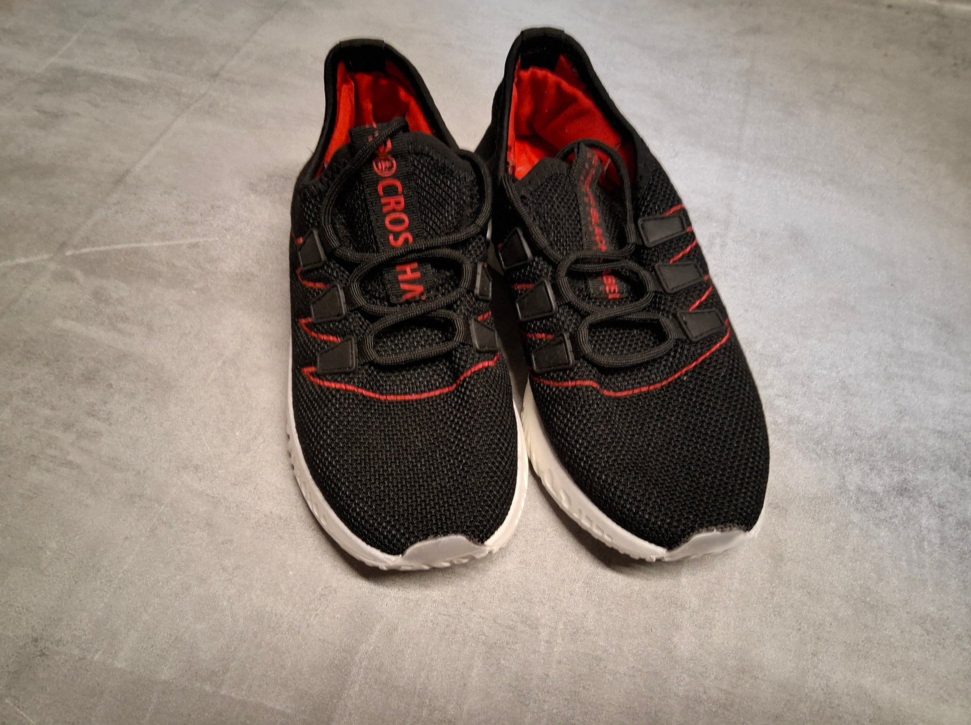 Lightweight and bold, these Crosshatch Black Label trainers come in a sleek black with striking red accents and white soles. A comfy, breathable pair for everyday wear — ideal for school, weekend play, or sporty days out.