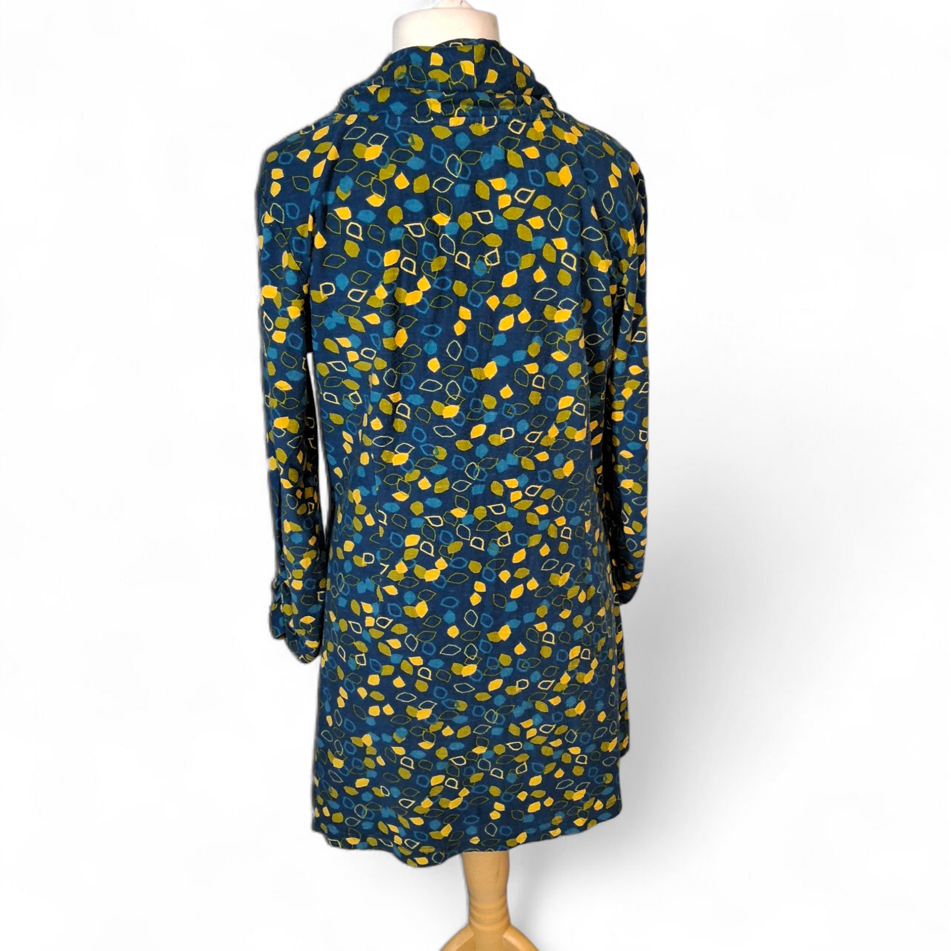 Adini Blue & Yellow Patterned Roll Neck Cotton Dress – Size M (UK size 14)