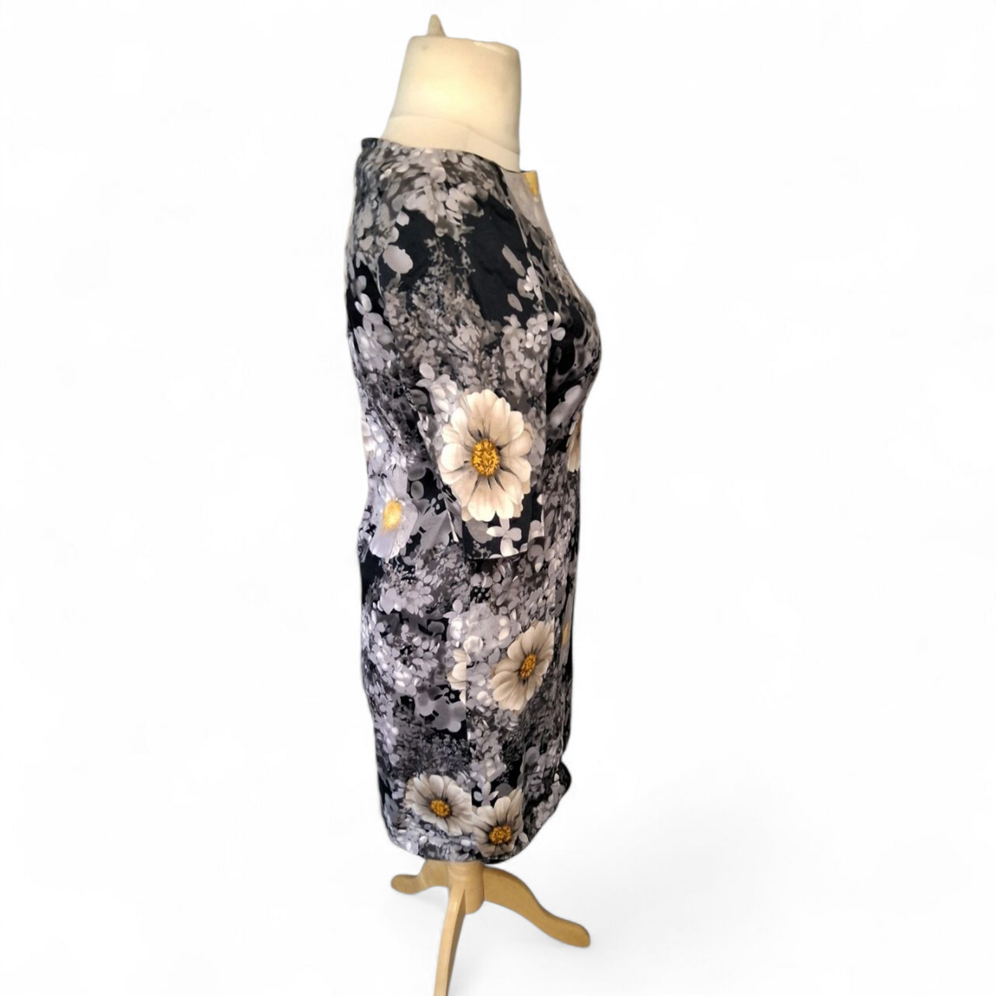 BCBGMAXAZRIA Navy, Grey & Yellow Floral Dress – Size M (UK size 10) – Zip Back