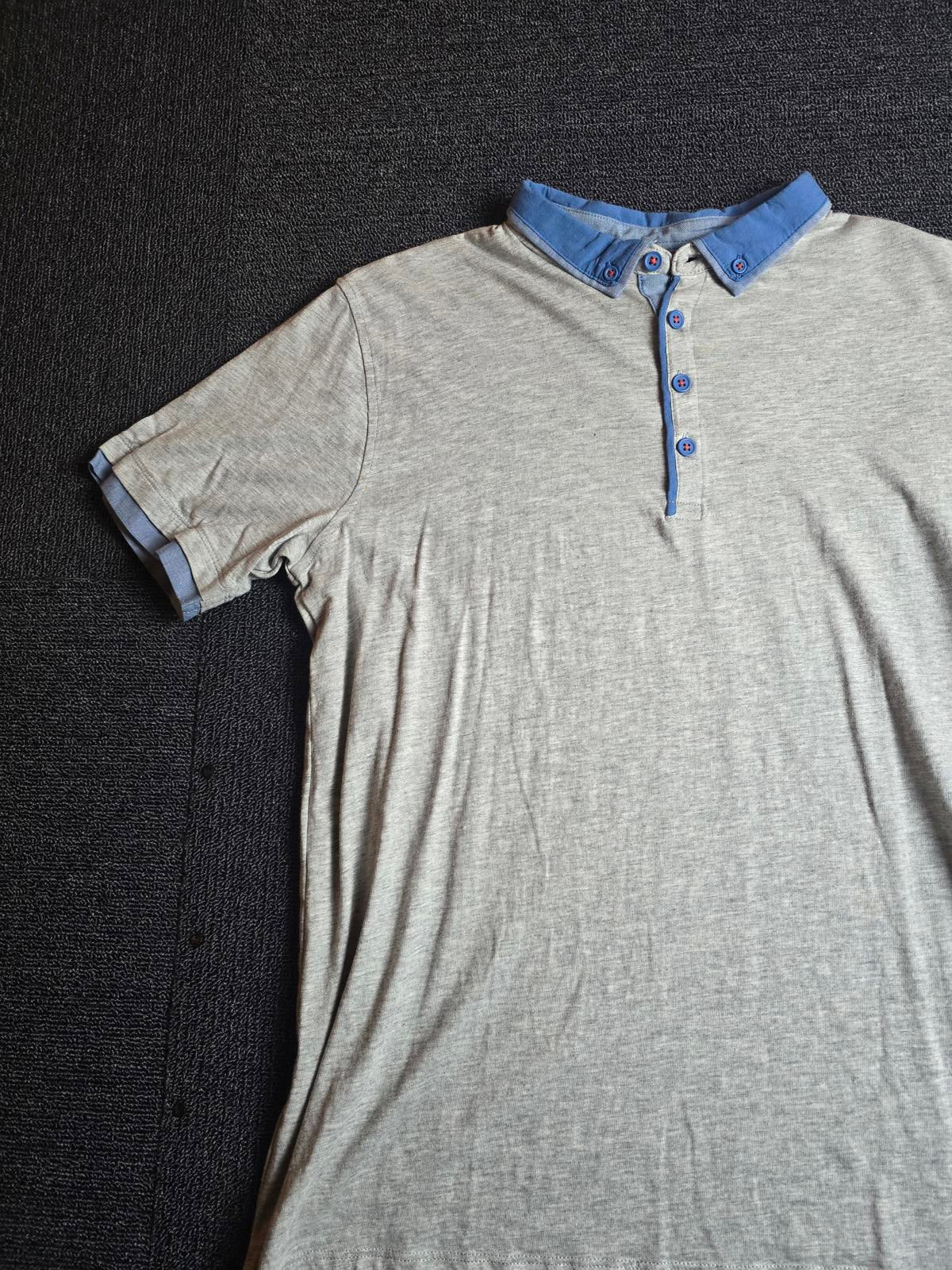 BHS Boys Grey & Blue Polo Shirt – Age 14-15 Years – 100% Cotton