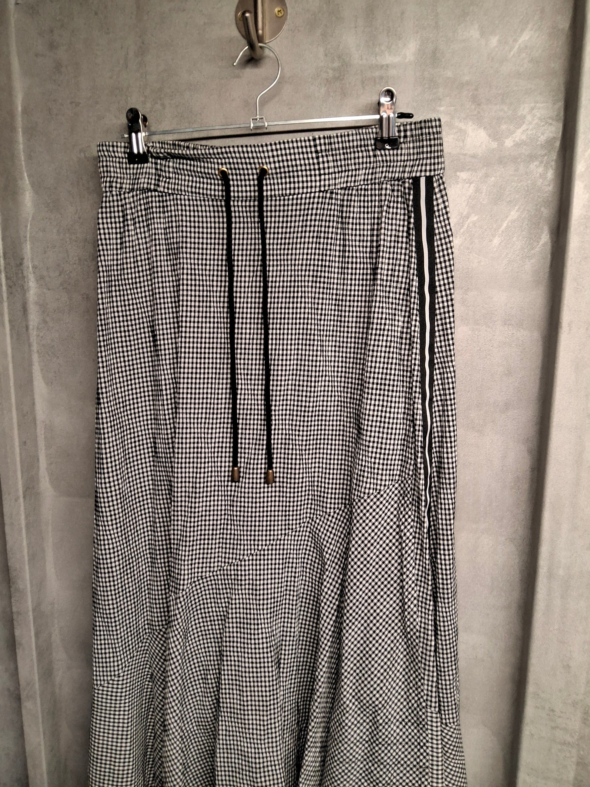 Black & White Checked Asymmetric Midi Skirt – Size 8 – Layered Style