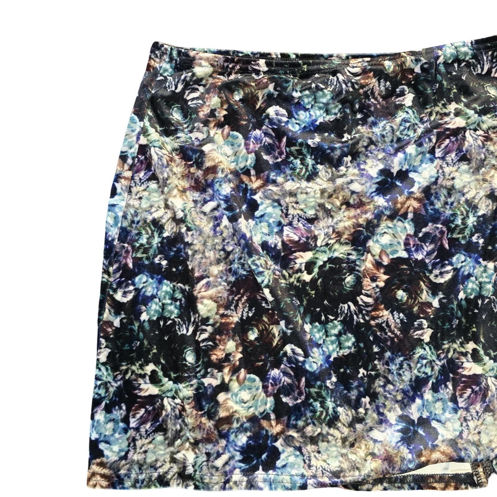 Blue Floral Velvet Mini Skirt L Size 16 Evening Urban Outfitters