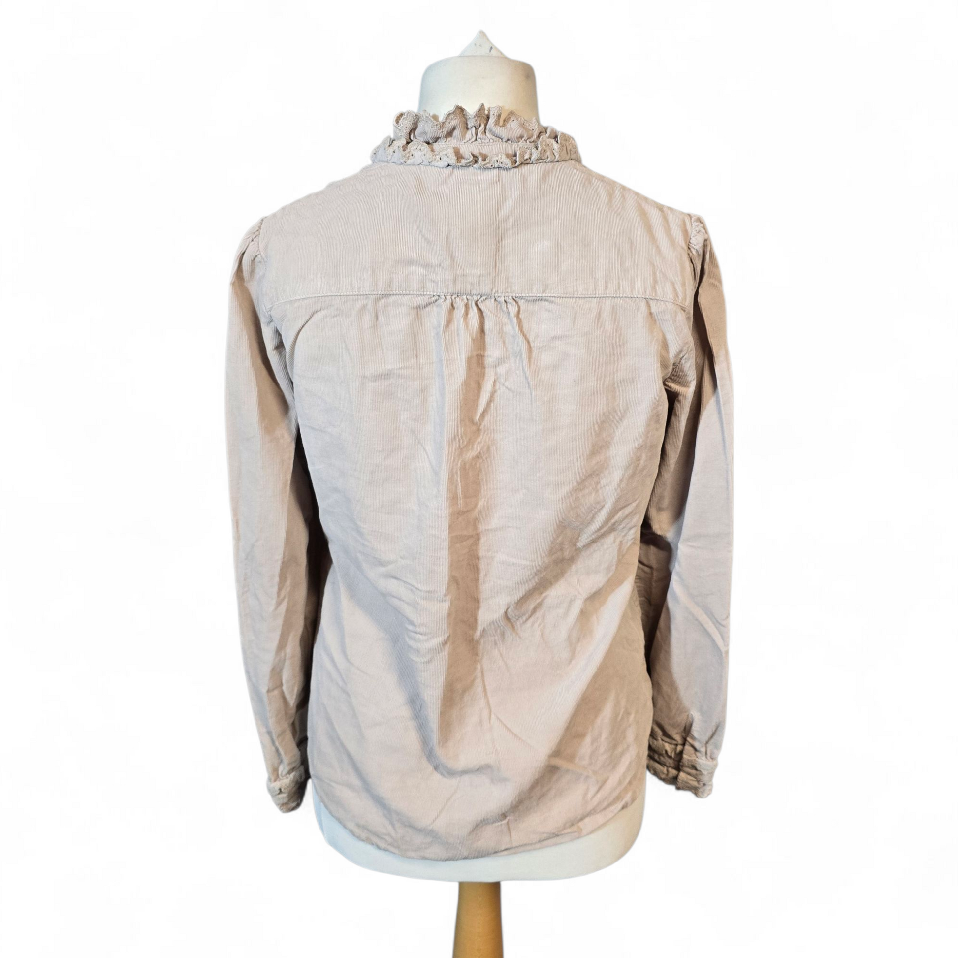 Boden Beige Cord Shirt – Frilly Collar & Cuffs – Size 8 – 100% Cotton