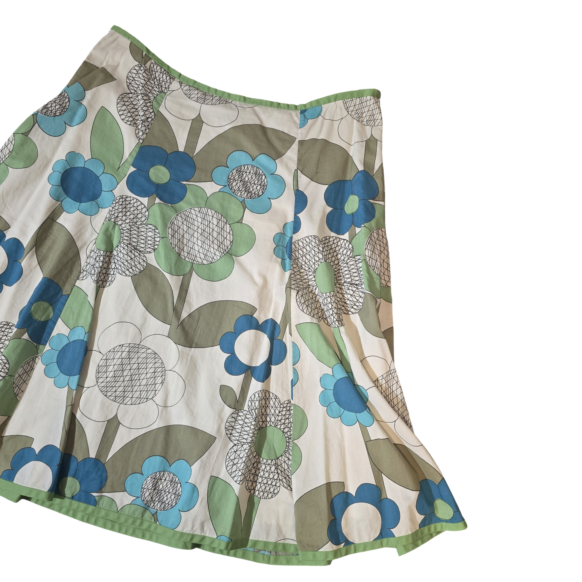 Boden Green & Cream Floral Flared Skirt β Size 12 Regular β 100% Cotton, Lined