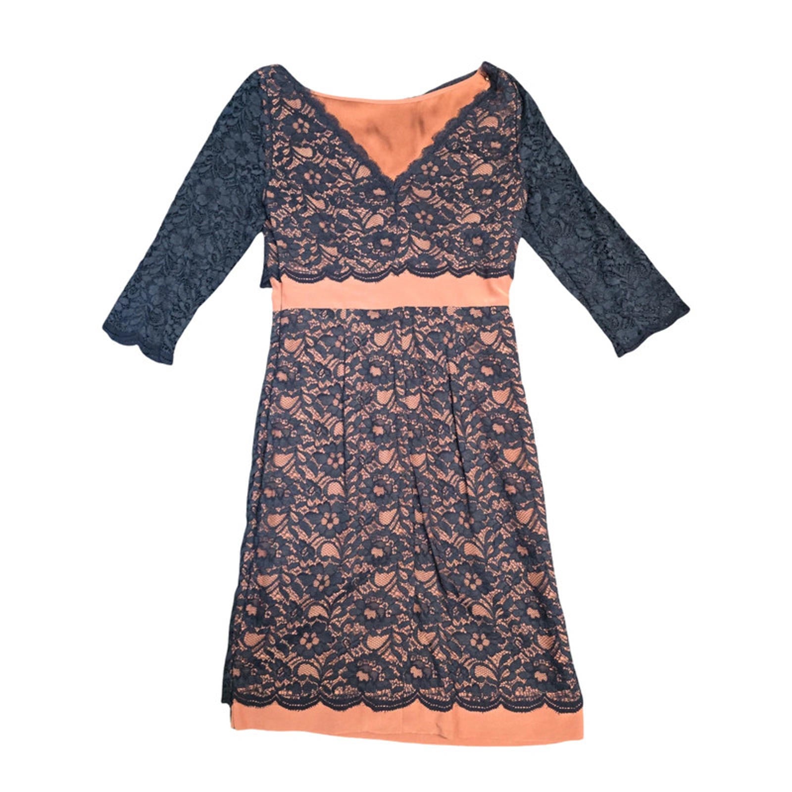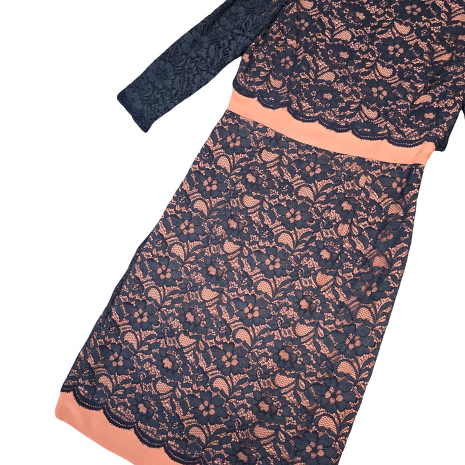 Preloved lace dress in navy over blush beige lining, ideal for occasion, work events, or special outings.