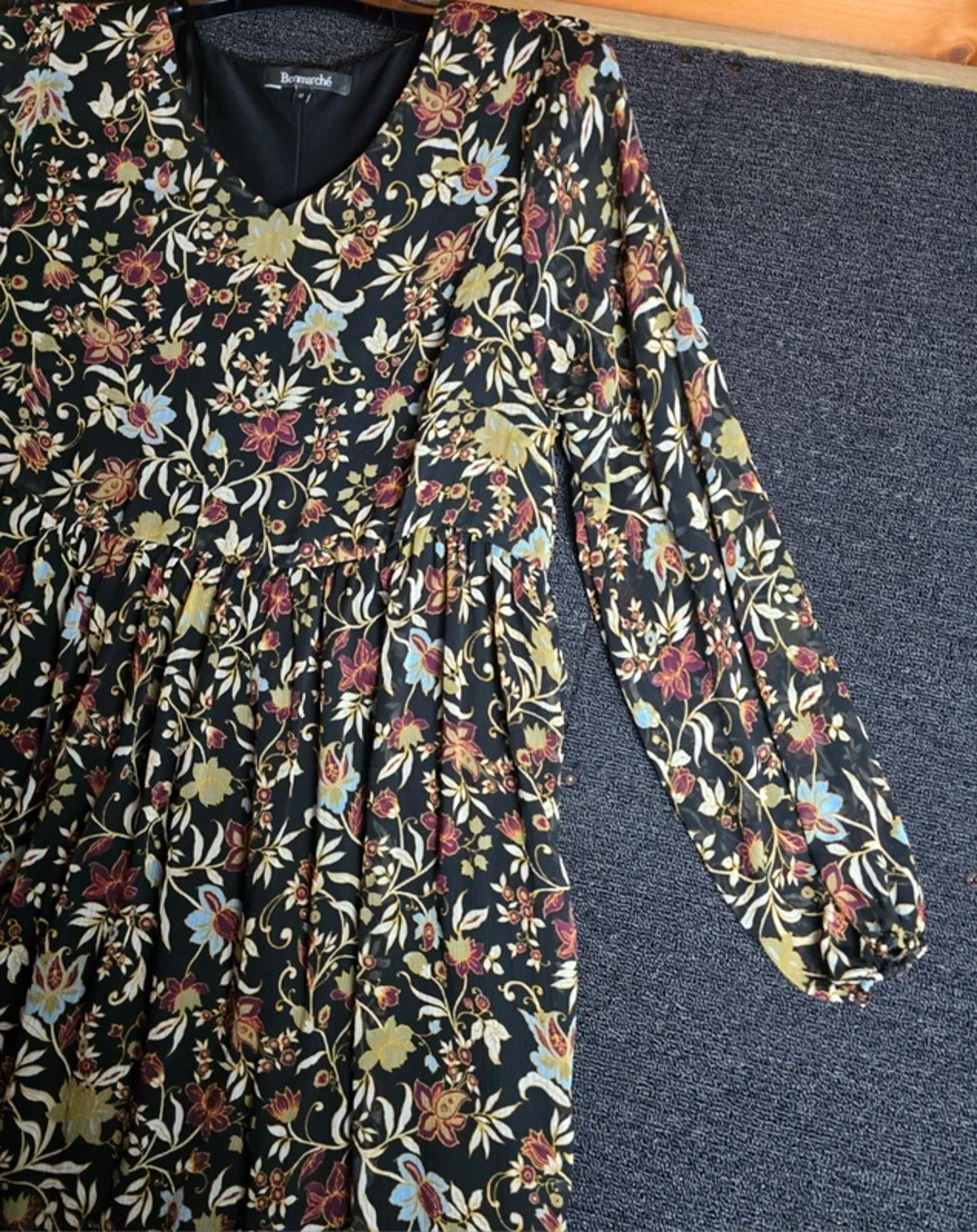 Bonmarché Floral Midi Dress Black Multi Colour Size 12 Long Sleeve