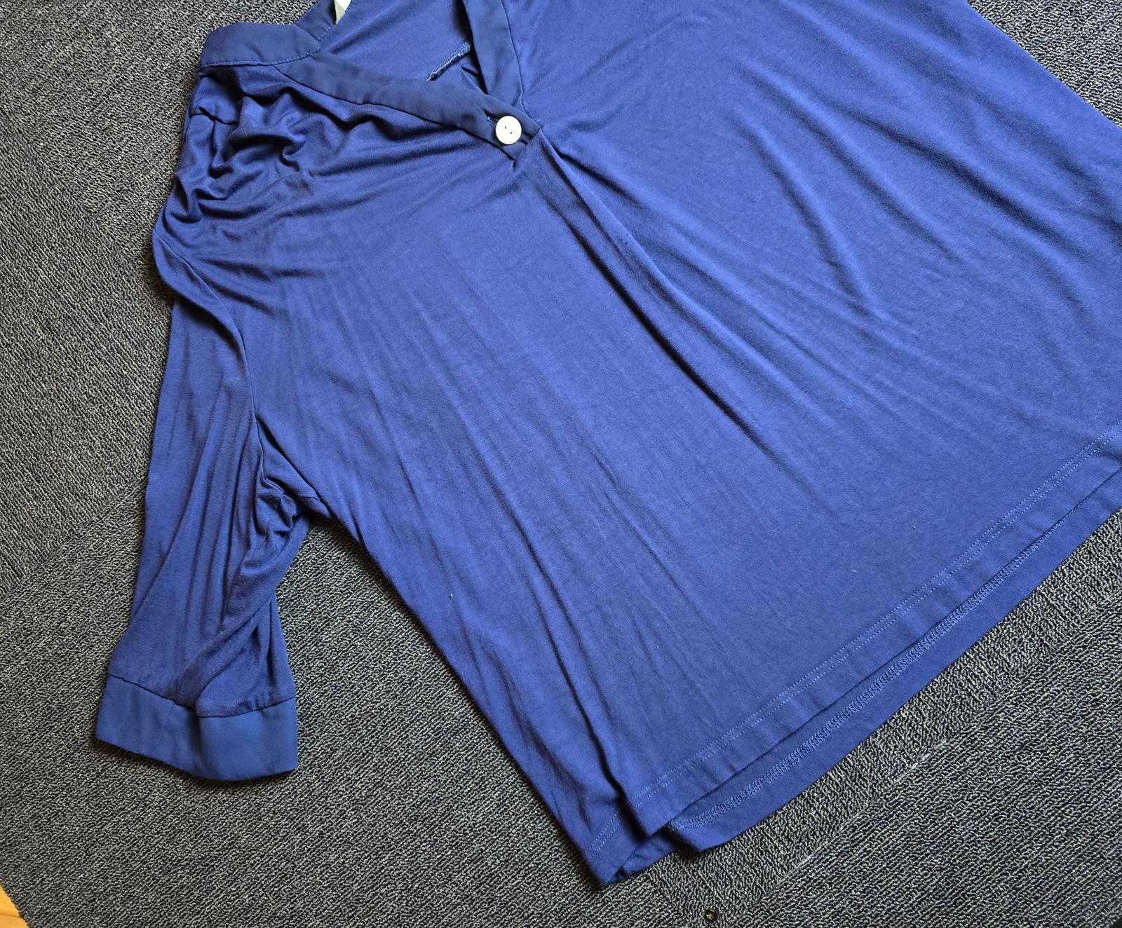 Bonmarché Navy Blue V-Neck Top Size 24 3/4 Sleeves Work Causal