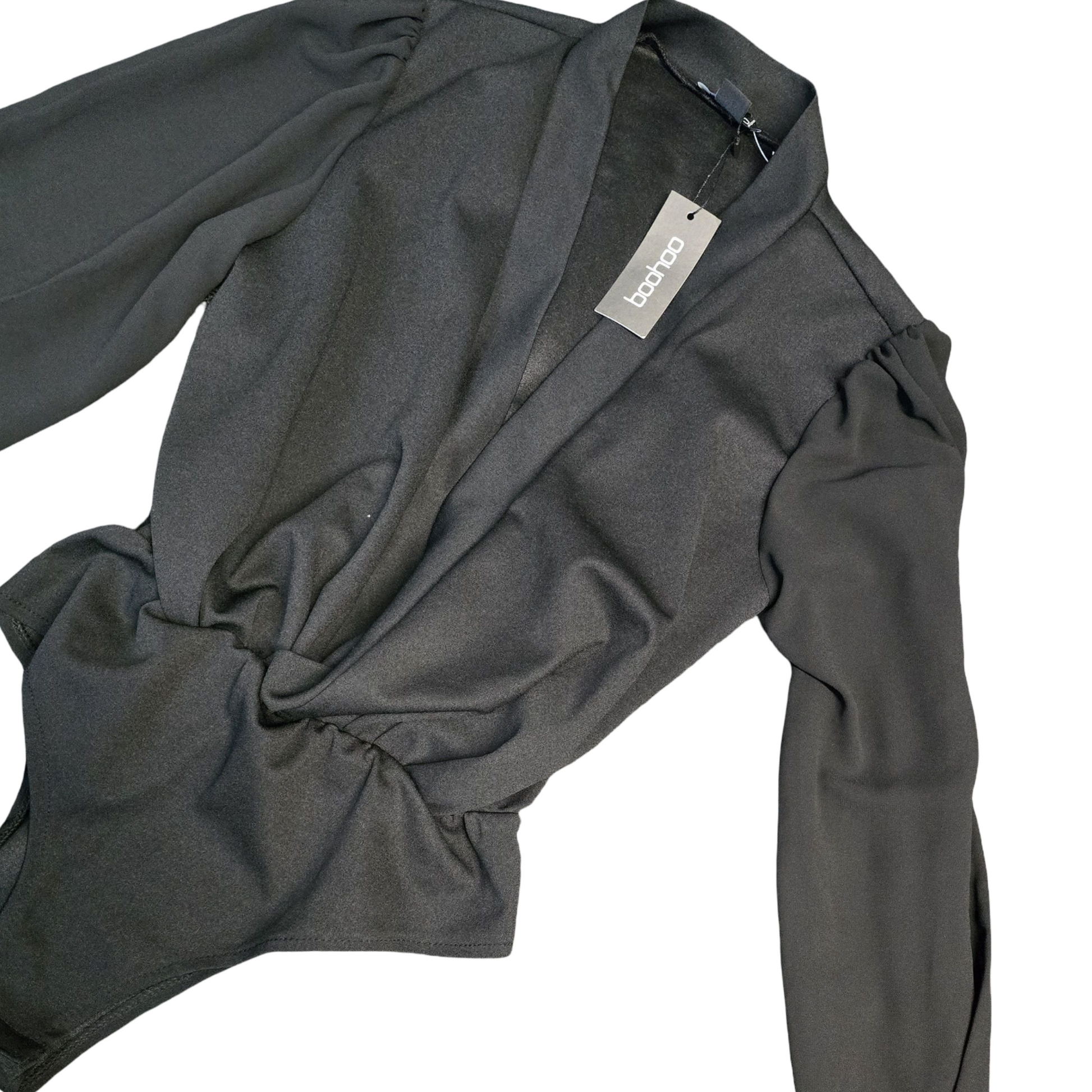 Boohoo Bodysuit Black Size 8 Sheer Sleeve Weekend New