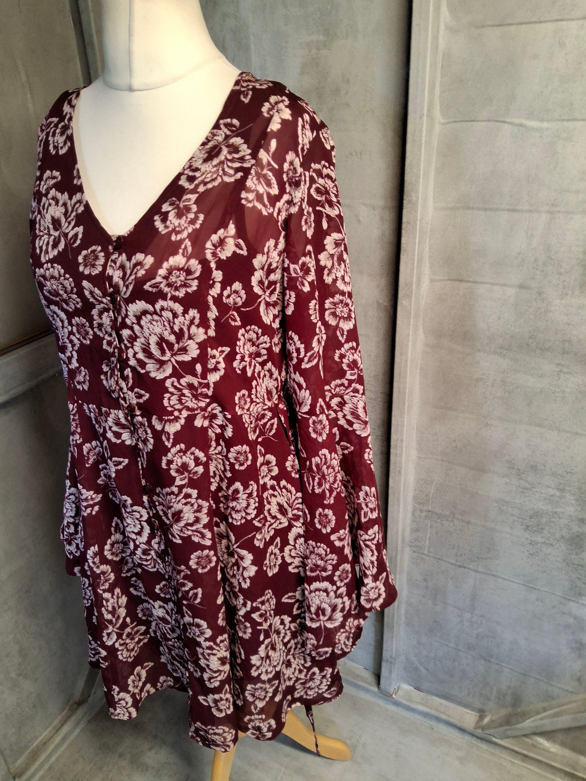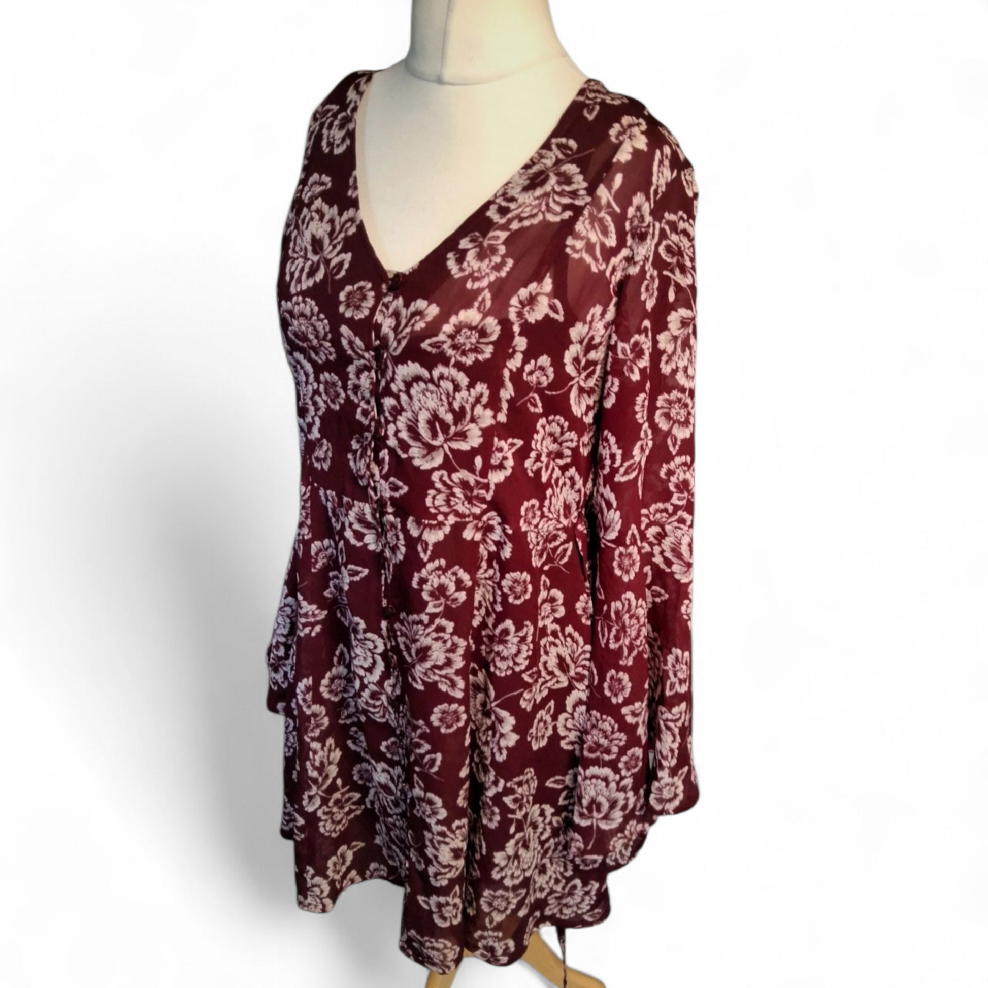 Brave Soul Burgundy & White Floral Dress – Size M (size 10/12)