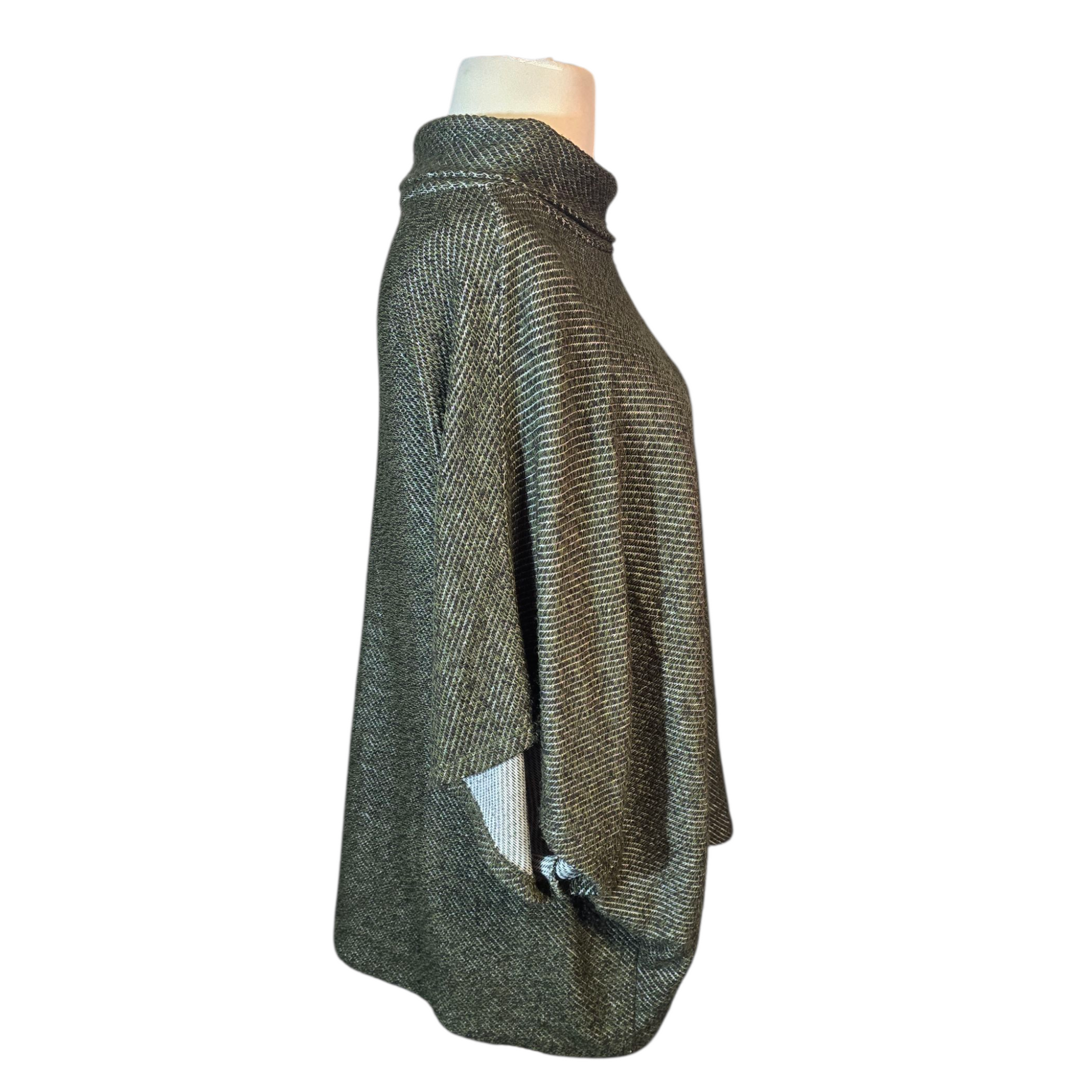 Style: Turtleneck poncho, relaxed drape