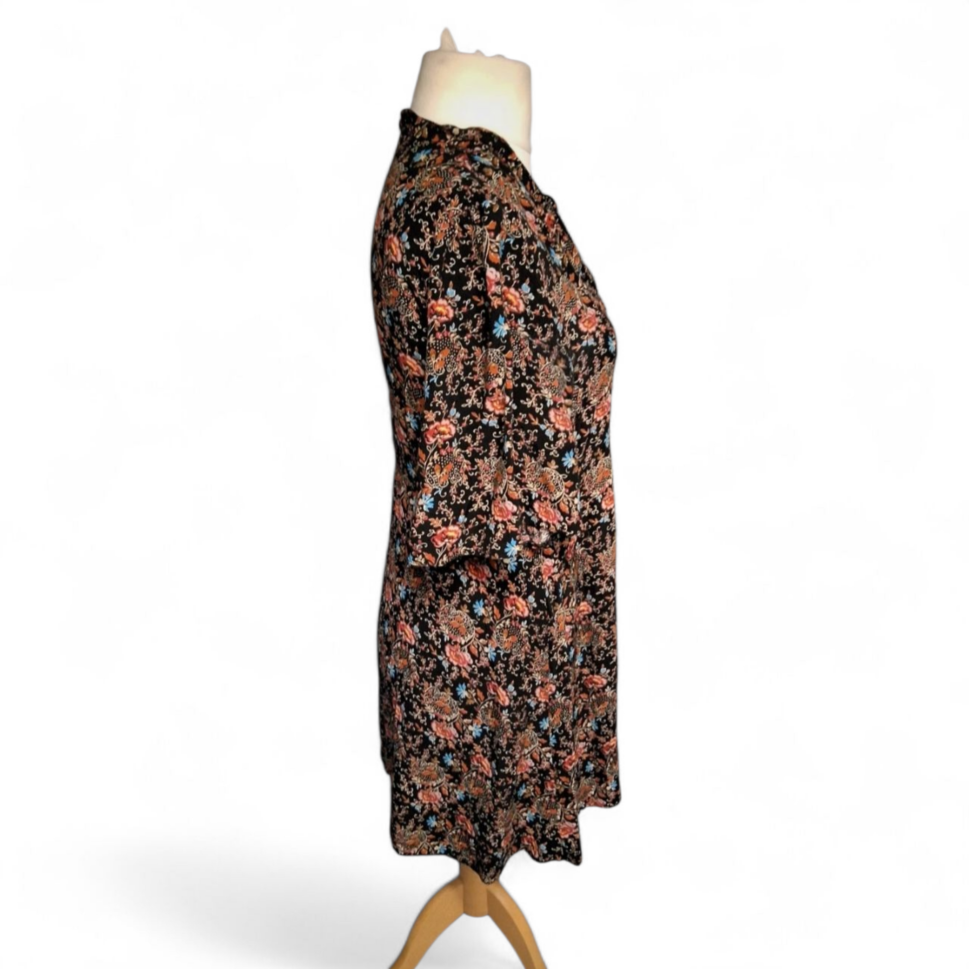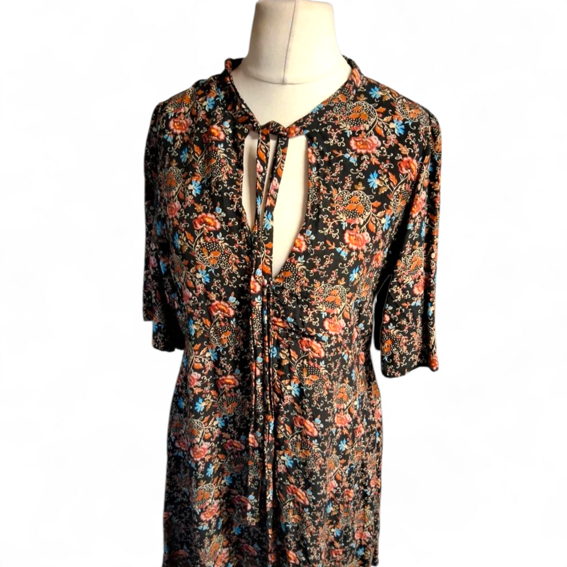 Cooperative Black Multicoloured Tie-Neck Dress – Size M (UK size 10/12) – 100% Viscose