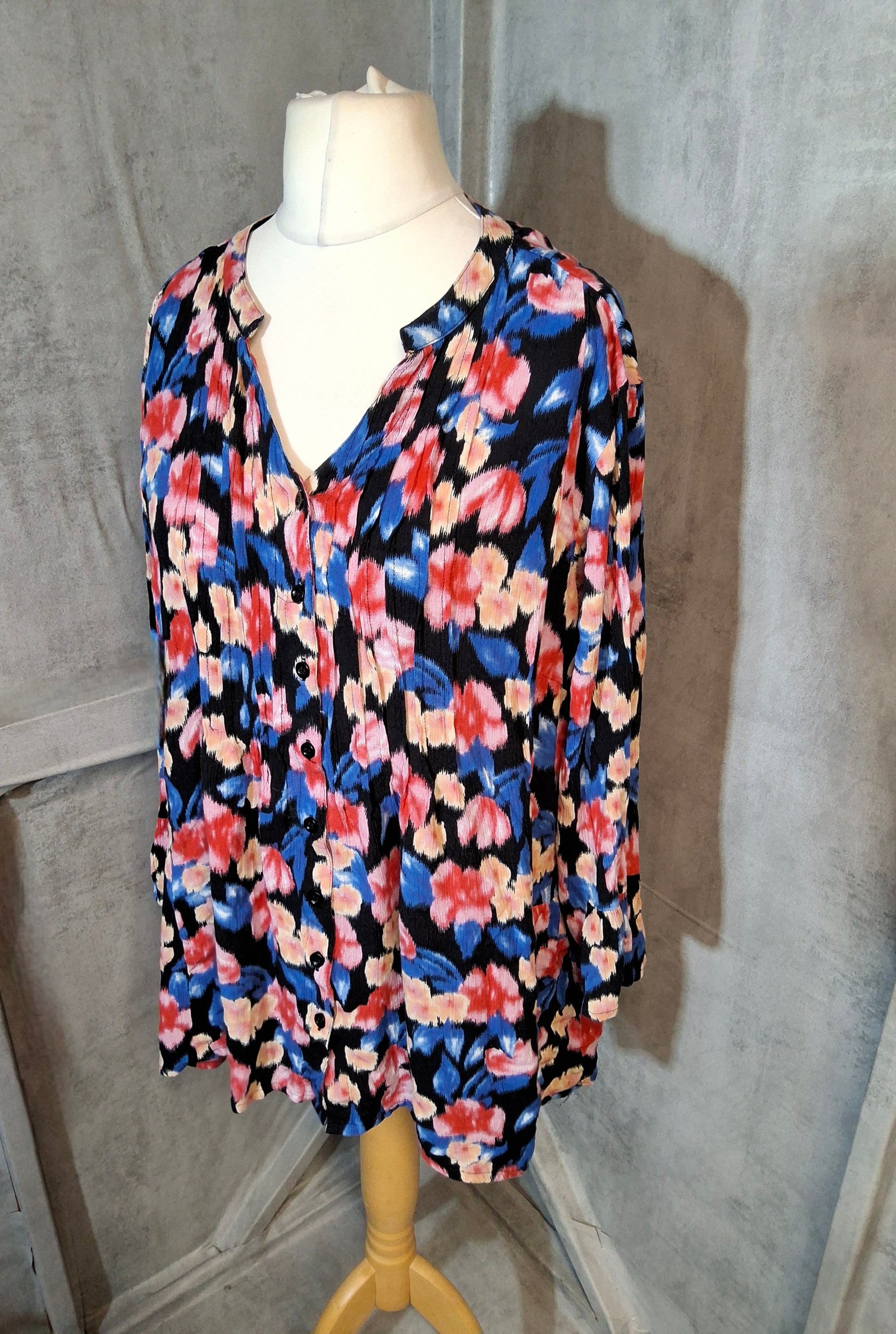 Cotton Traders Red & Blue Floral Blouse ā Size 20, Viscose, Flared 3/4 Sleeves