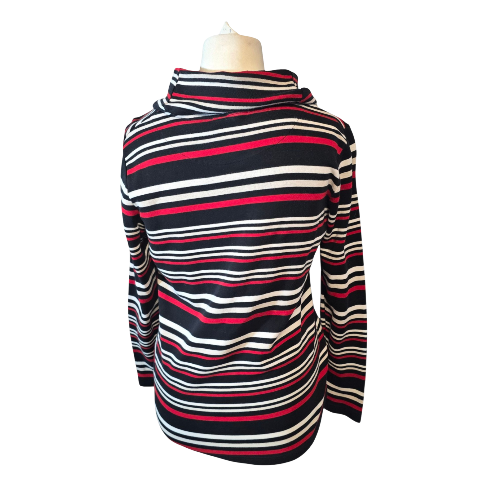 Dash Black, Red & White Striped Roll Neck Top – Size 14