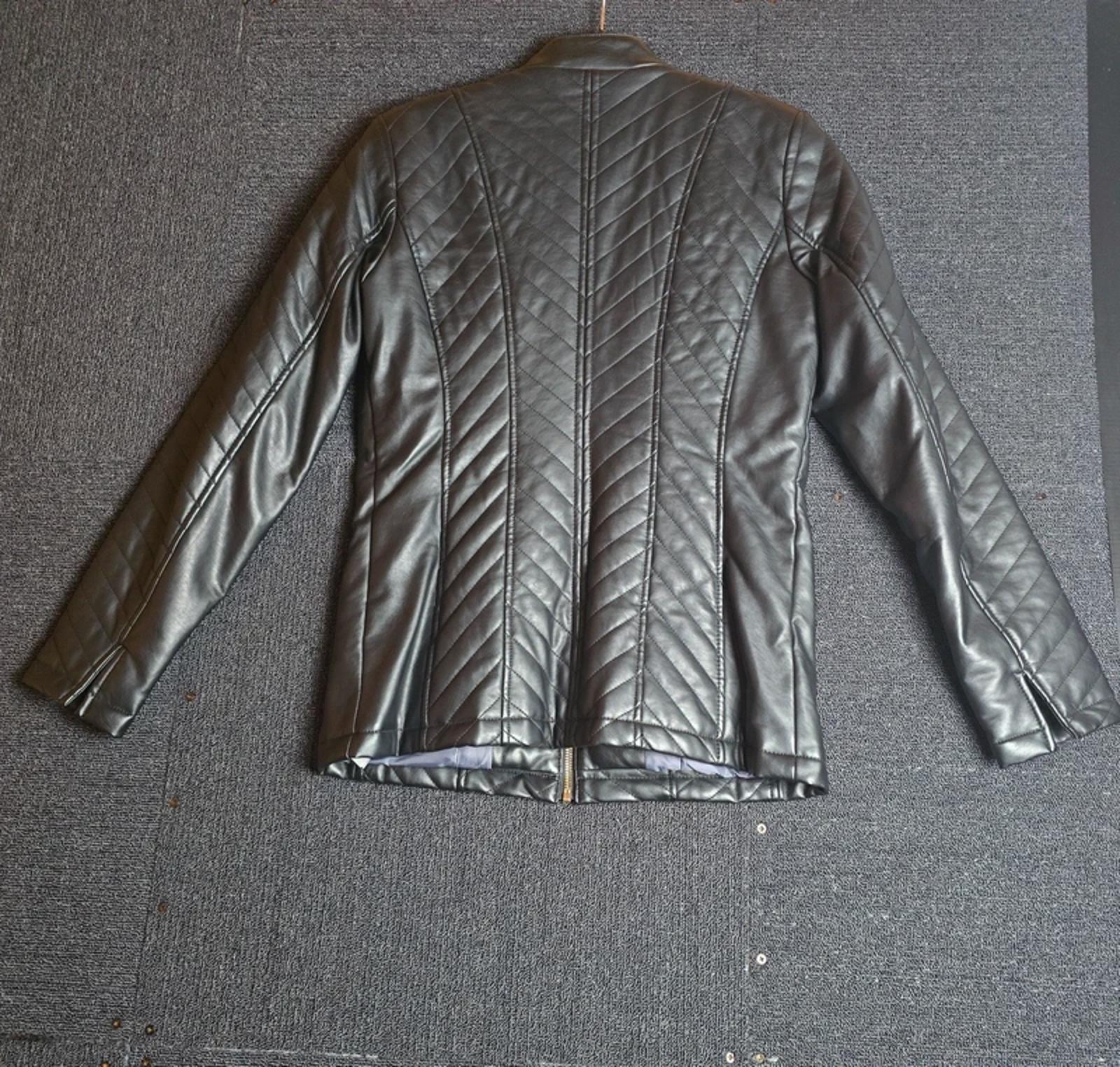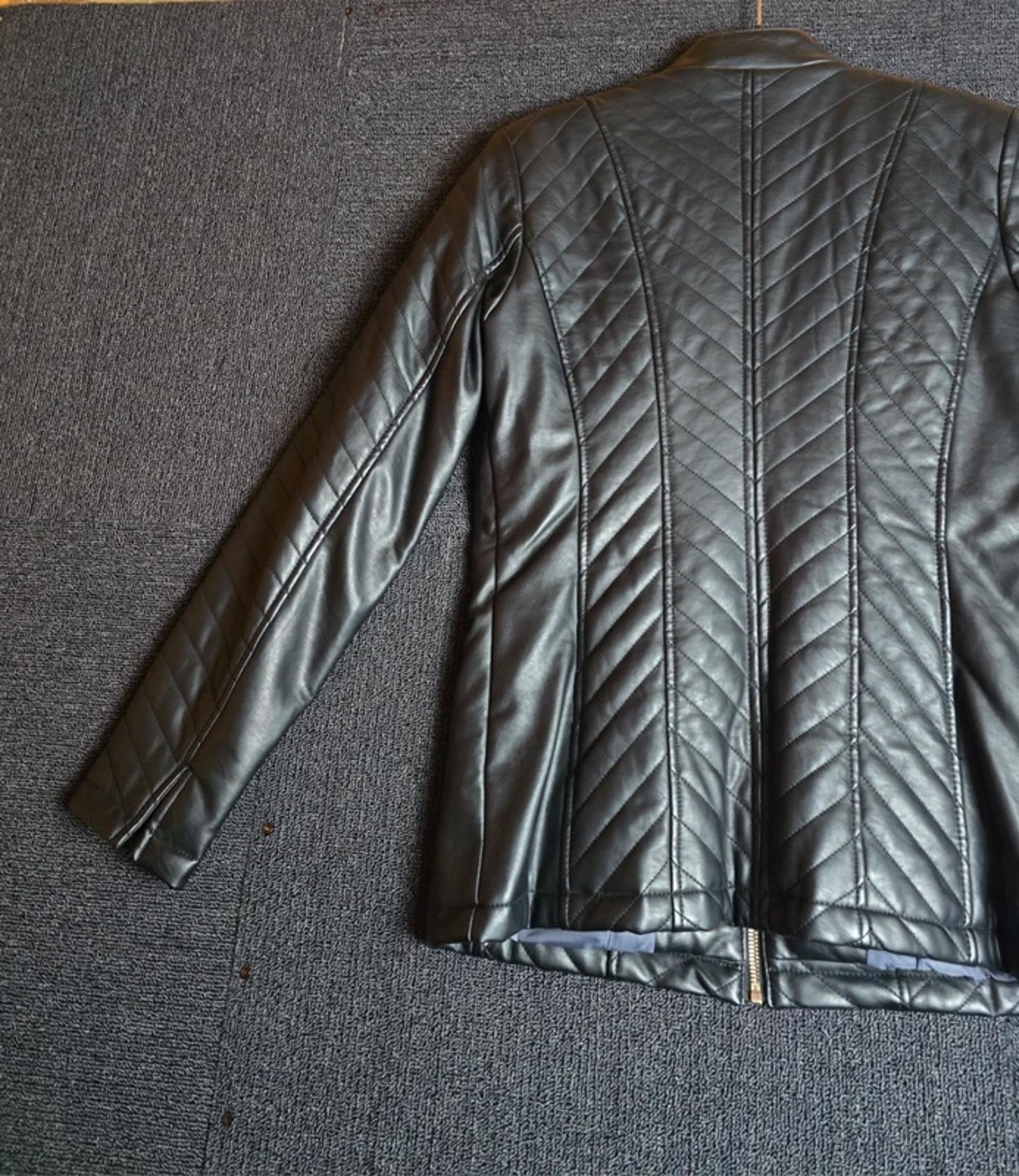 Preloved faux leather quilted jacket in black, ideal for everyday, casual, or smart layering wear.