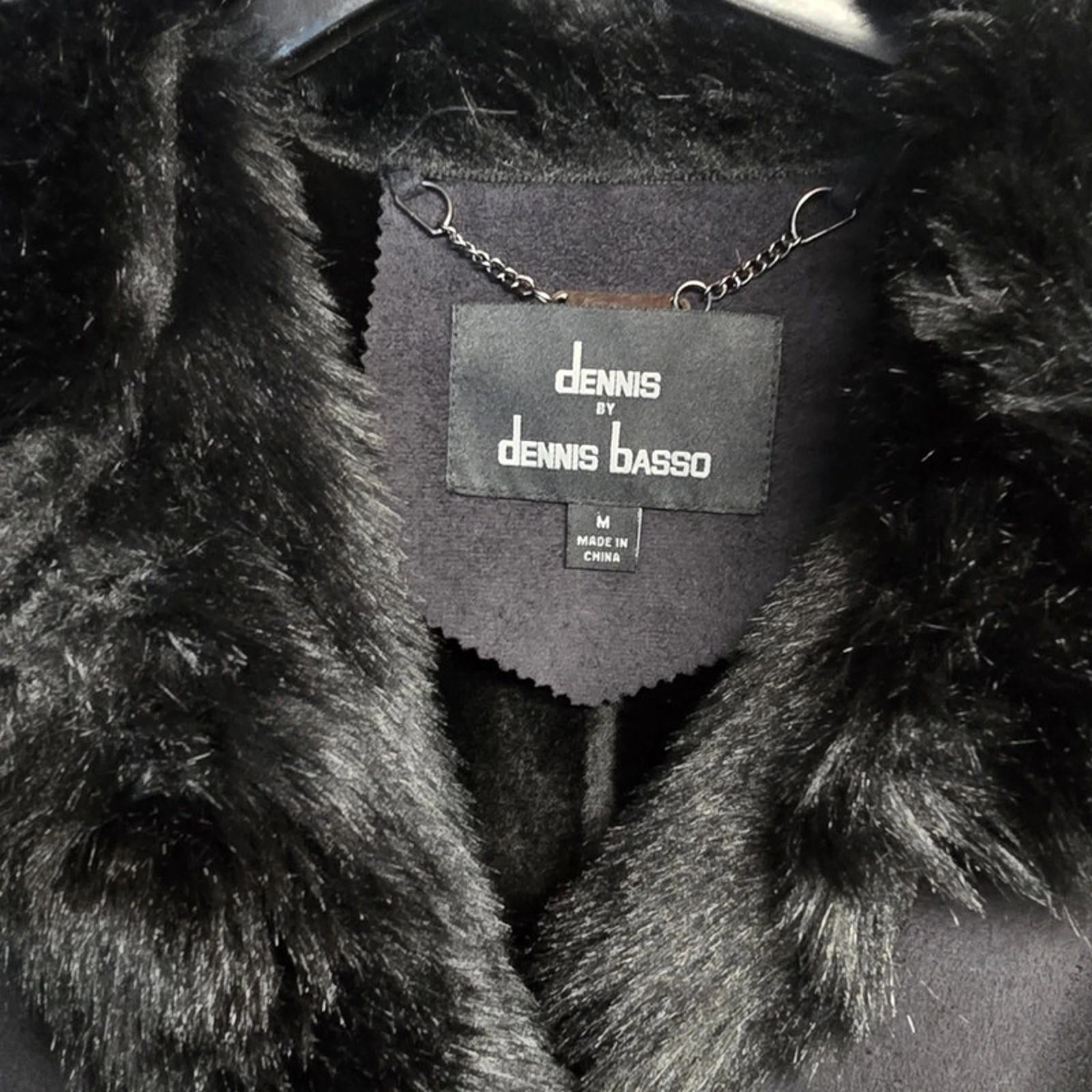 Dennis by Dennis Basso Long Winter Coat Black Size M Faux Fur Trim NEW