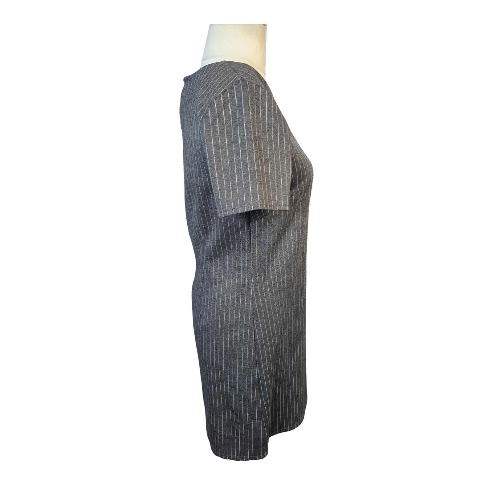Preloved dress in grey with a pinstripe pattern, ideal for work or smart-casual wear.