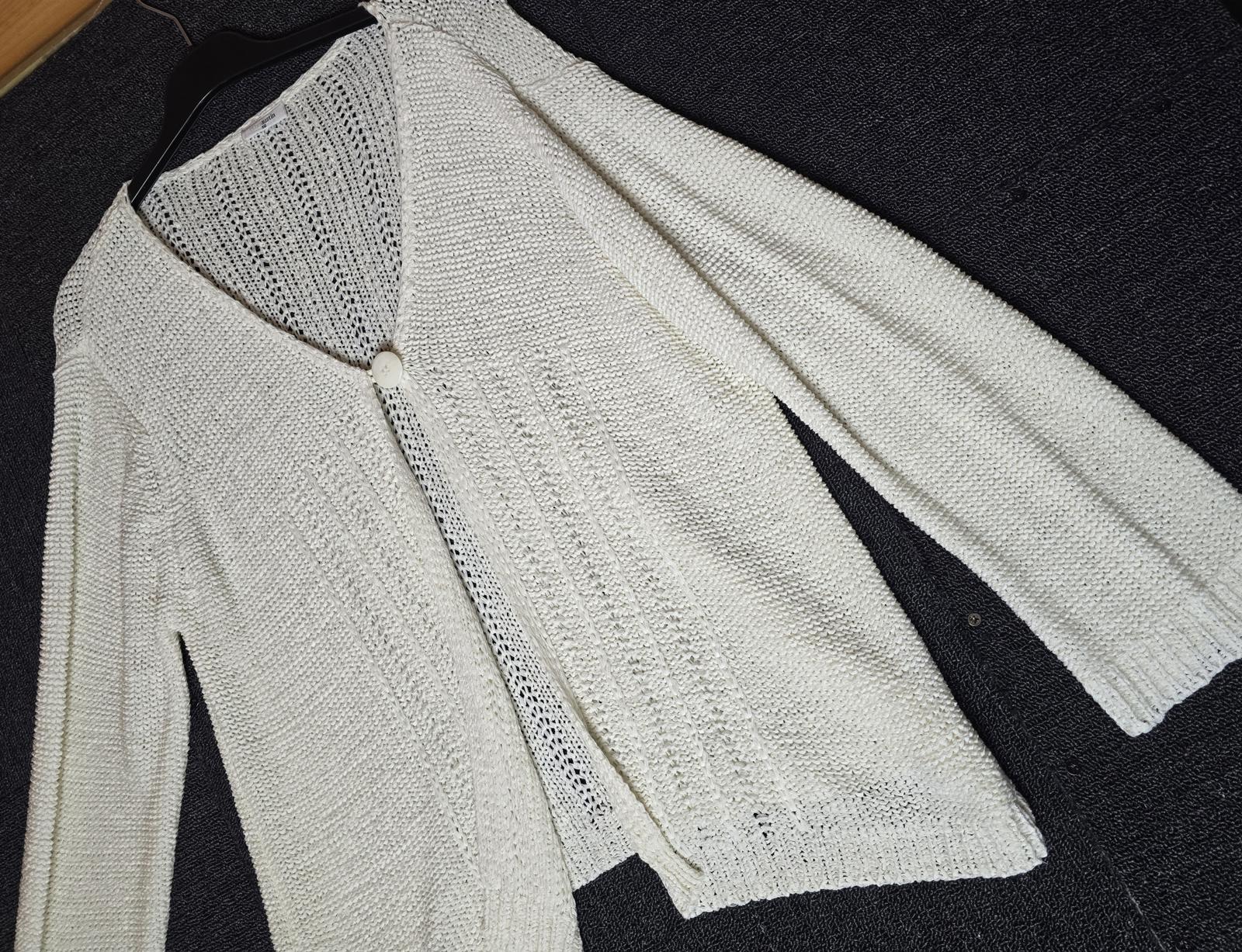 Preloved crochet design cardigan in white, ideal for casual layering and comfy wear.