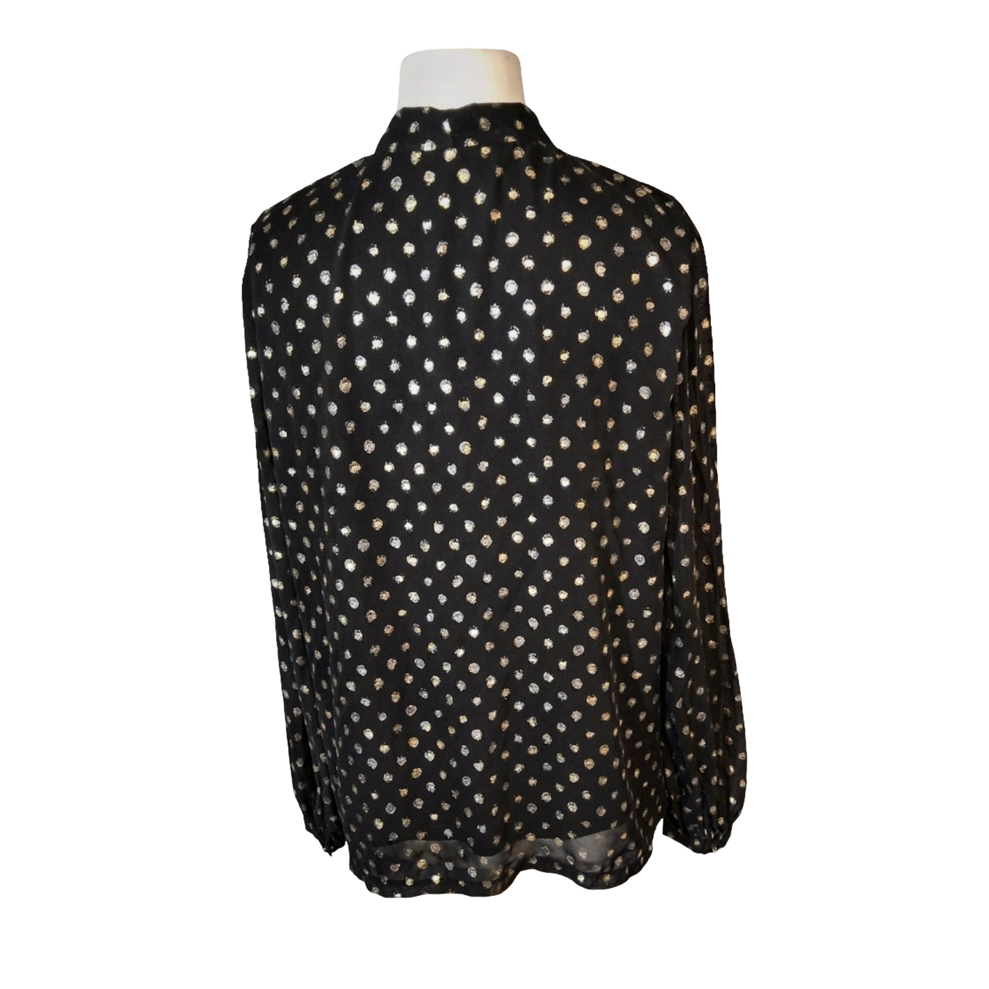 F&F Black & Gold Polka Dot Blouse with Neck Tie – Size 14