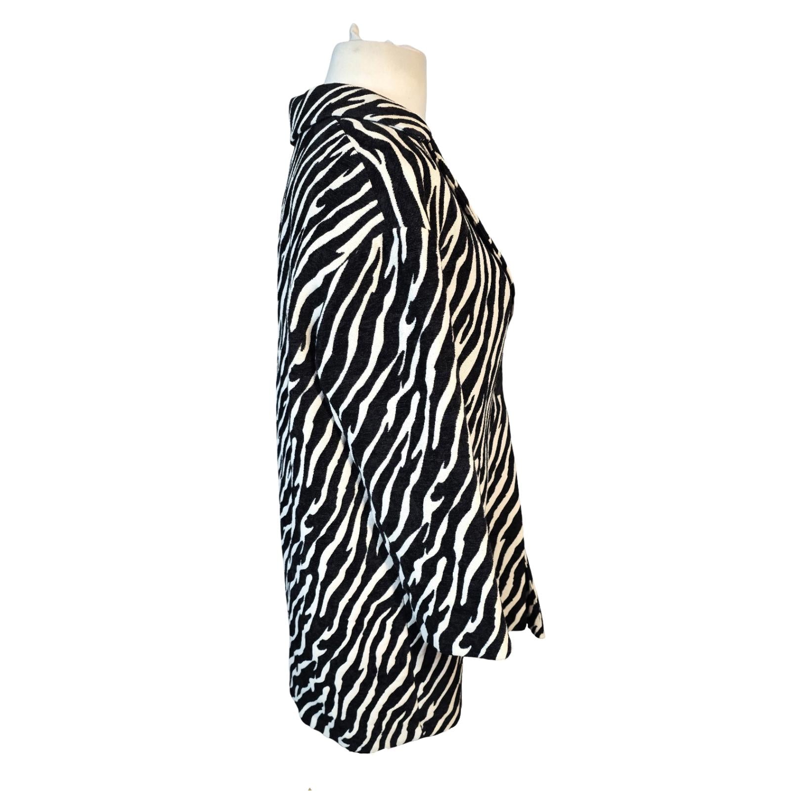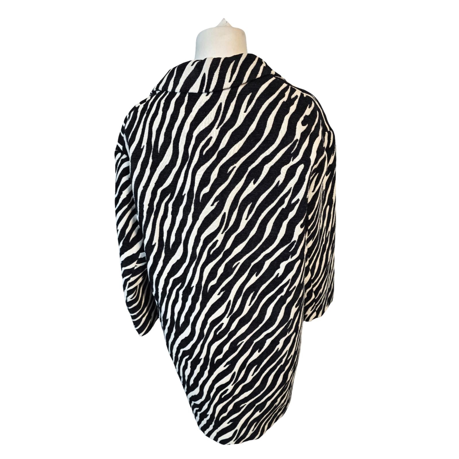 Preloved peacoat in black & white zebra print, ideal for everyday, casual or layering wear.