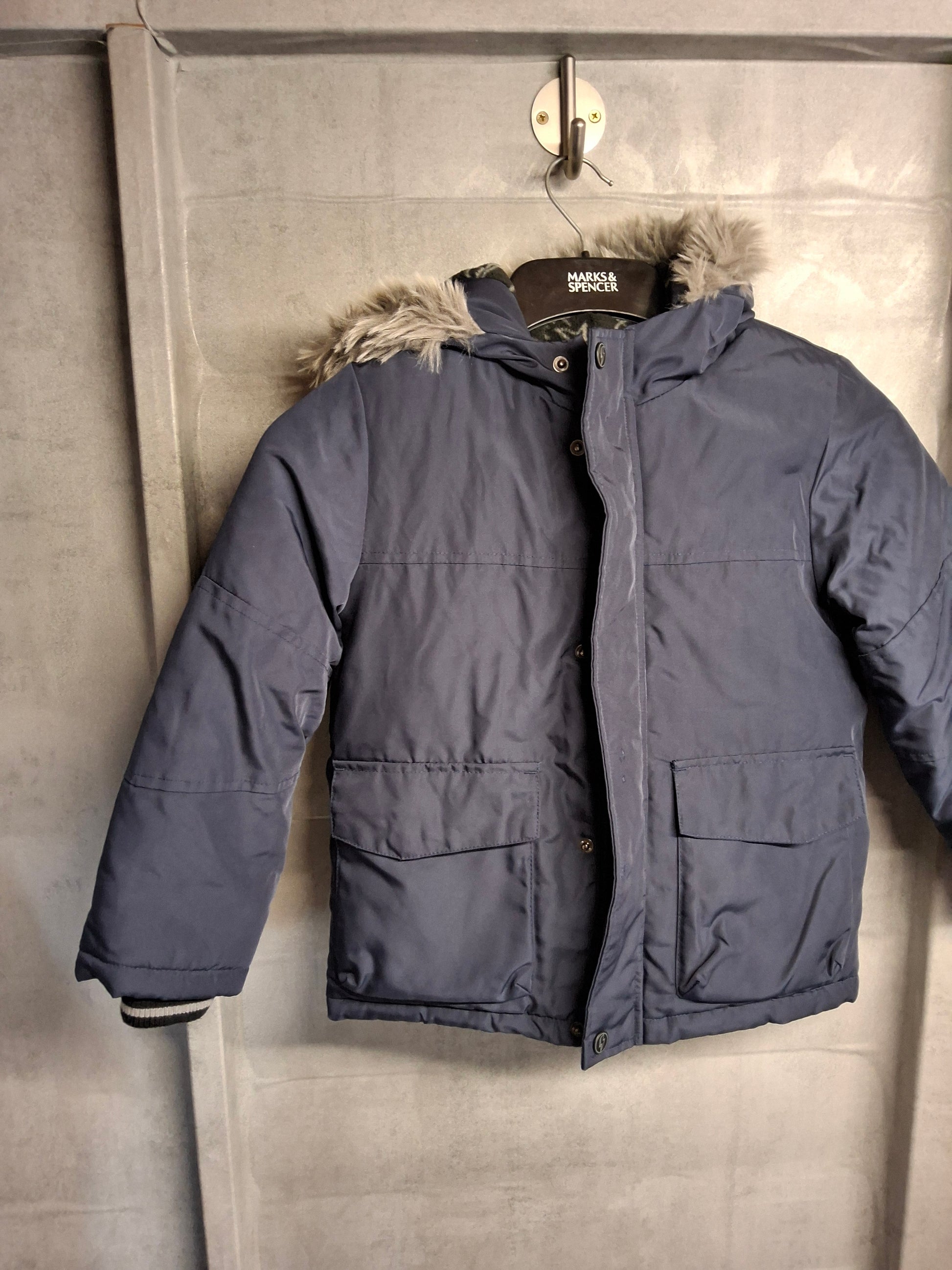 F&F Boys Navy Winter Coat – Faux Fur Hood, Age 5–6yrs