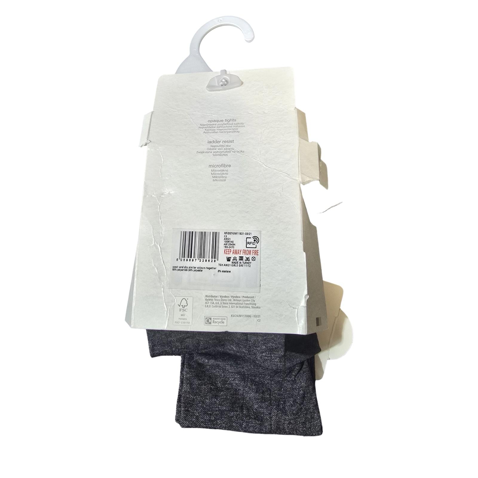 F&F Grey Opaque Tights Ladder-Resist Girls 11–12 Years 40 Den 2 Pack