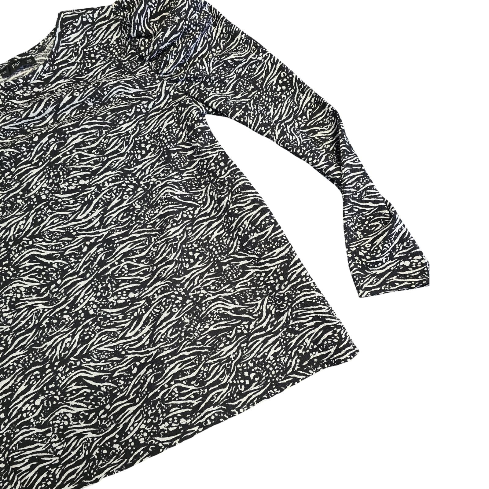 F&F Long Sleeve Top Black White Patterned Size 12 Ruffle Shoulder