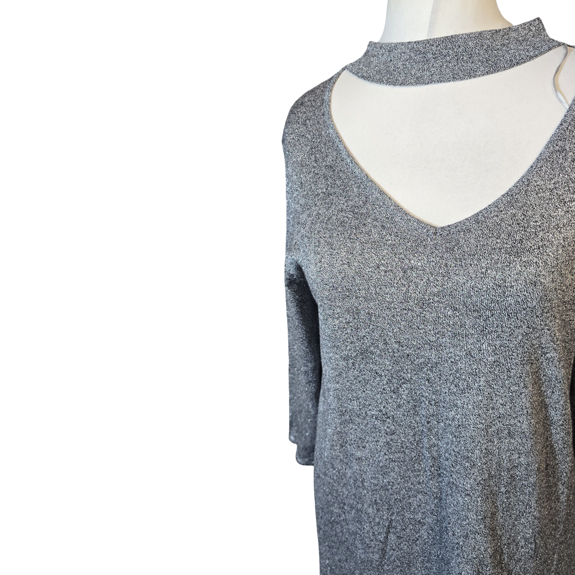 F&F Silver Sparkle Choker Knit – Longer Length – 3/4 Sleeves – Size 16