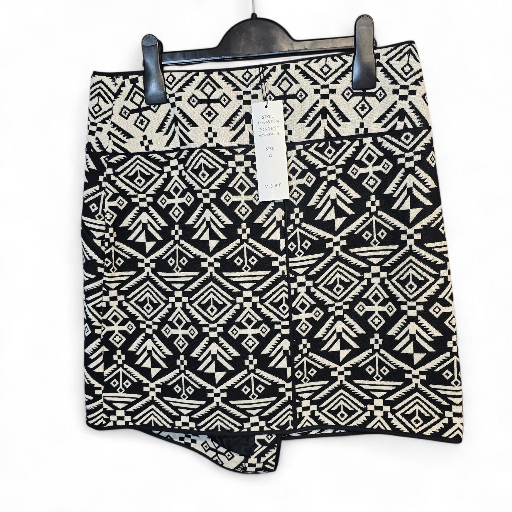 For Cynthia Cream & Black Wrap Mini Skirt – Aztec Print – Zip Front – NWT – Size 8 (Would Fit size 10/12)