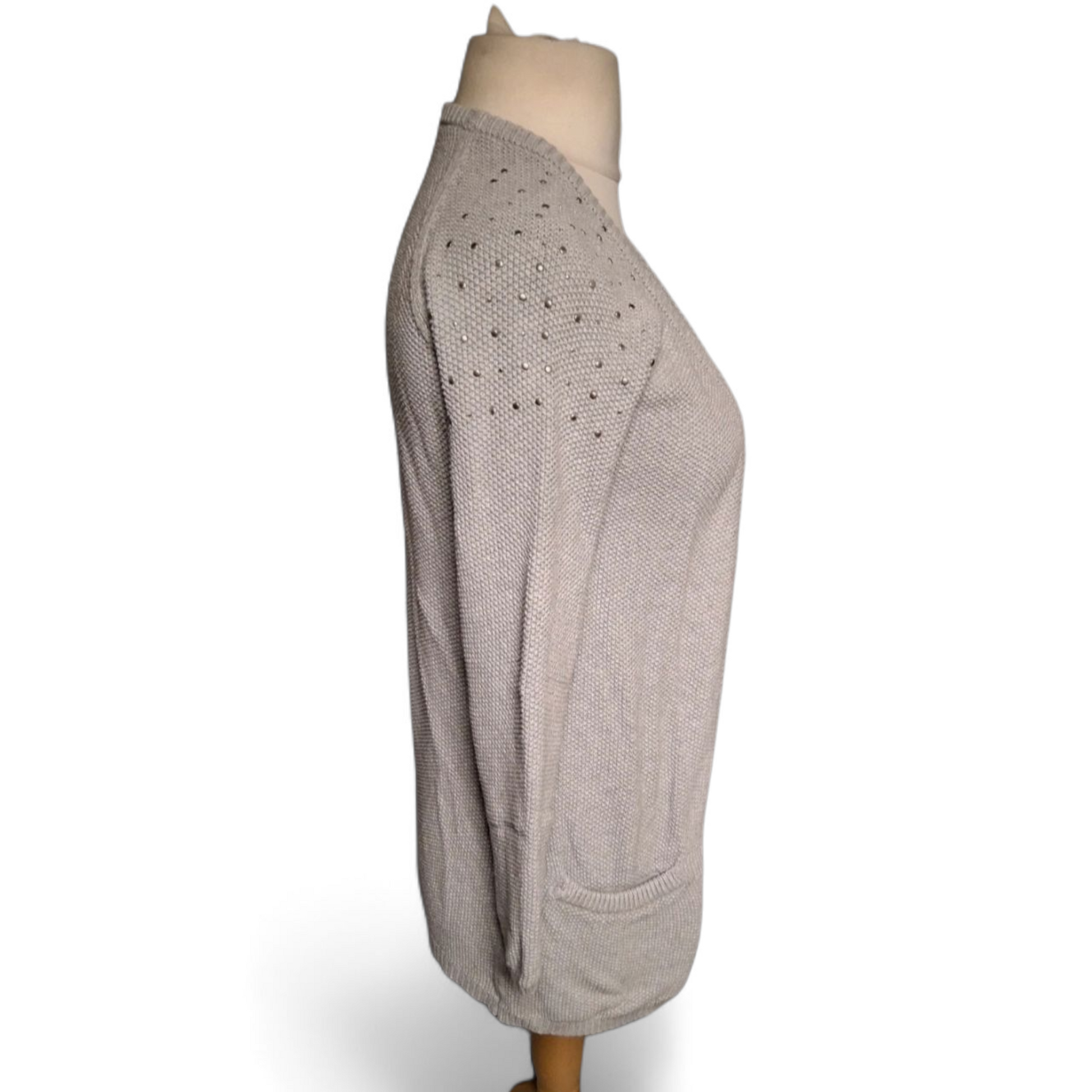 Fransa Grey Stud Shoulder Open Knit Cardigan – Size S (UK size 8/10)