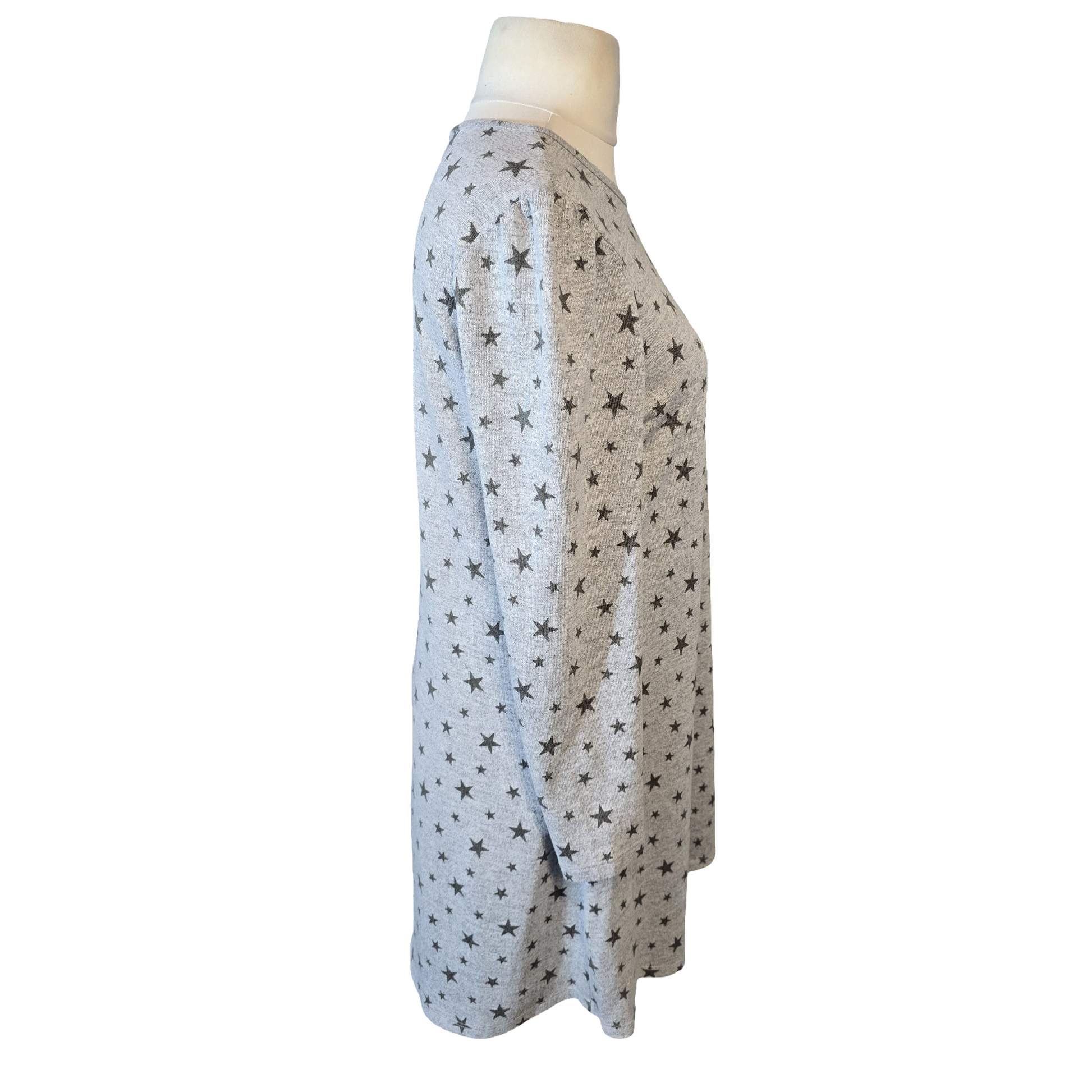 Cosy meets cute in this star-print jumper dress — ideal for chilly days when you still want to shine ✨. Soft, comfy, and perfect for pairing with tights and boots for that easy autumn-winter look.