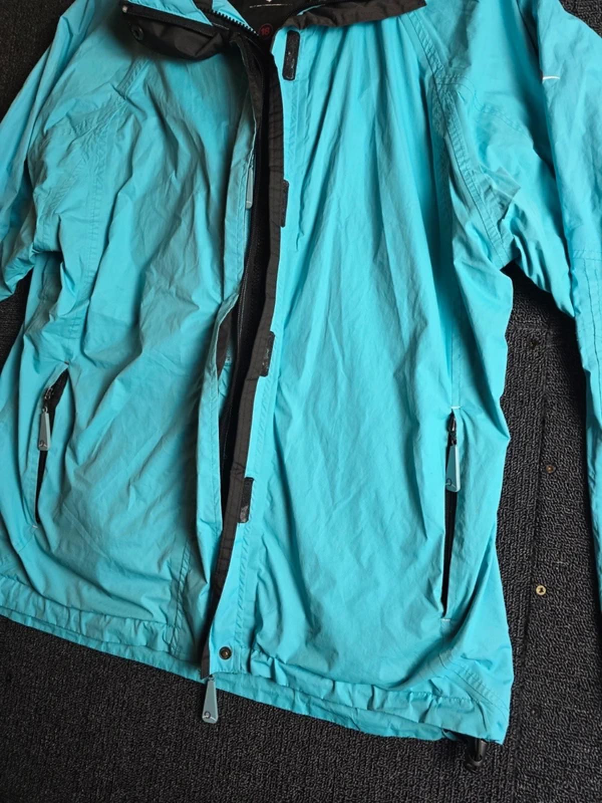 Preloved waterproof jacket in light blue, ideal for outdoor wear, walking or everyday layering. Practical, lightweight and fully lined for comfort. Clean, carefully checked, and ready to wear.