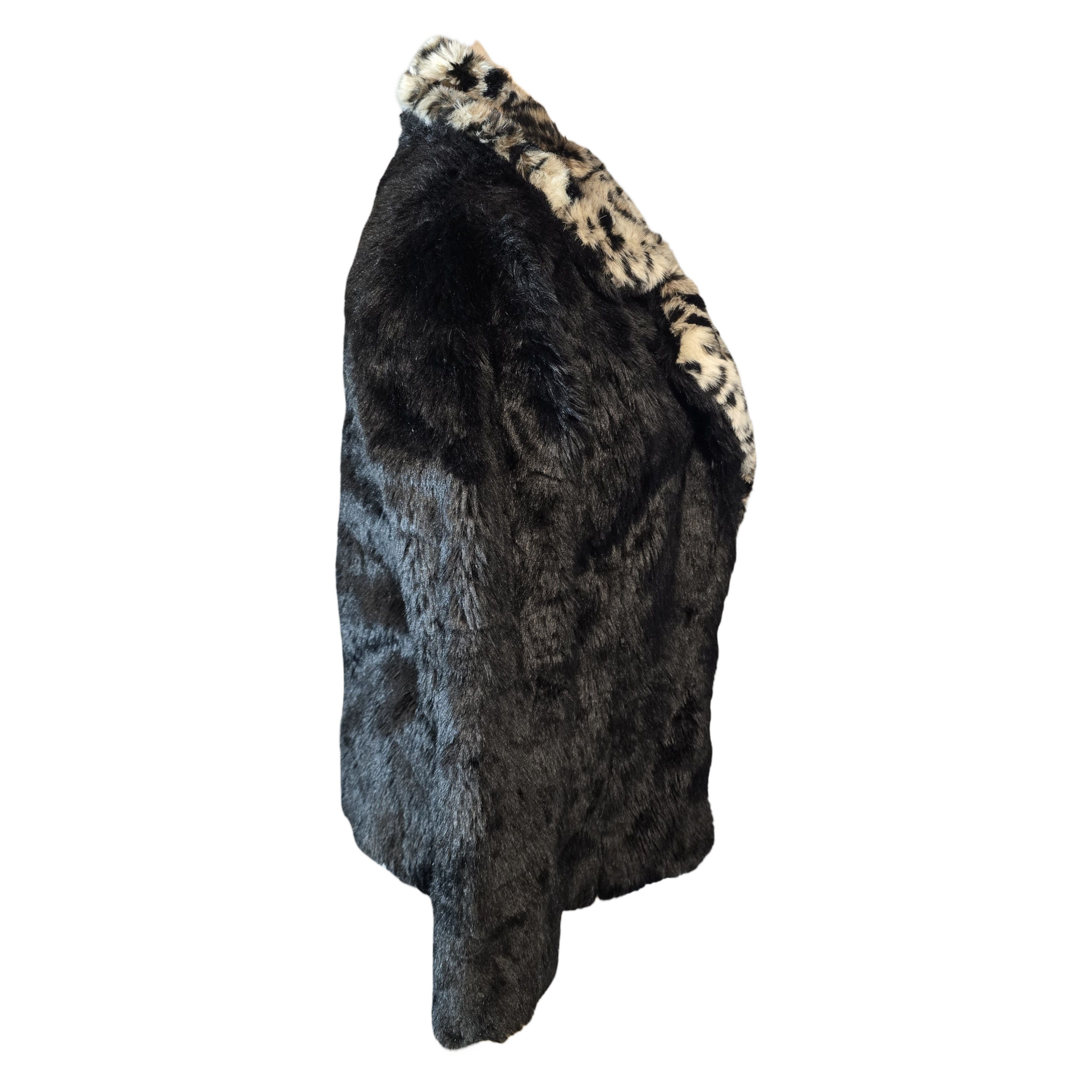 Glamorous Black & Beige Animal Faux Fur Coat – Size 8 – Mid Length, Lined