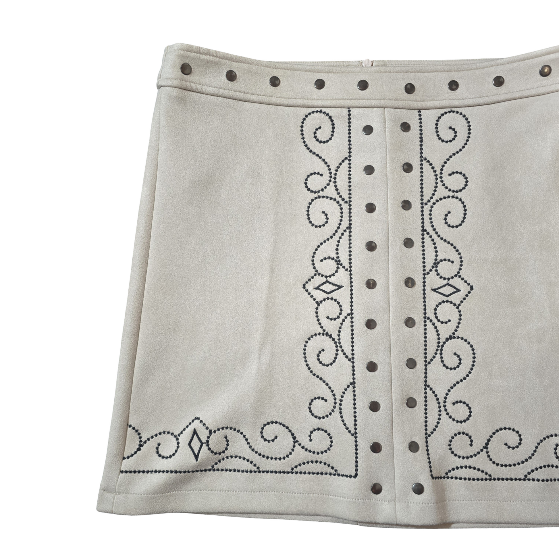 Glamorous Cream Faux Suede Mini Skirt – Size L (UK size 12) – Stud & Embroidered Detail