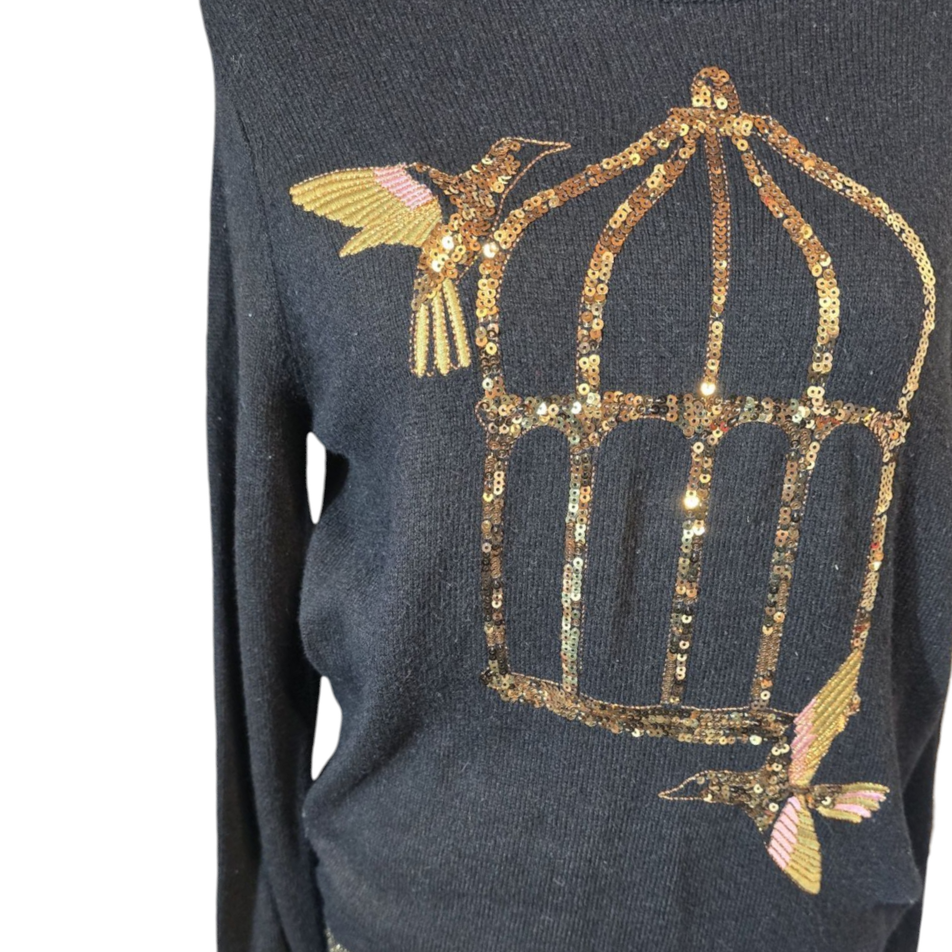 H&M Black & Gold Sequin Birdcage Jumper ā Size S (size 10/12) ā Longline Knit