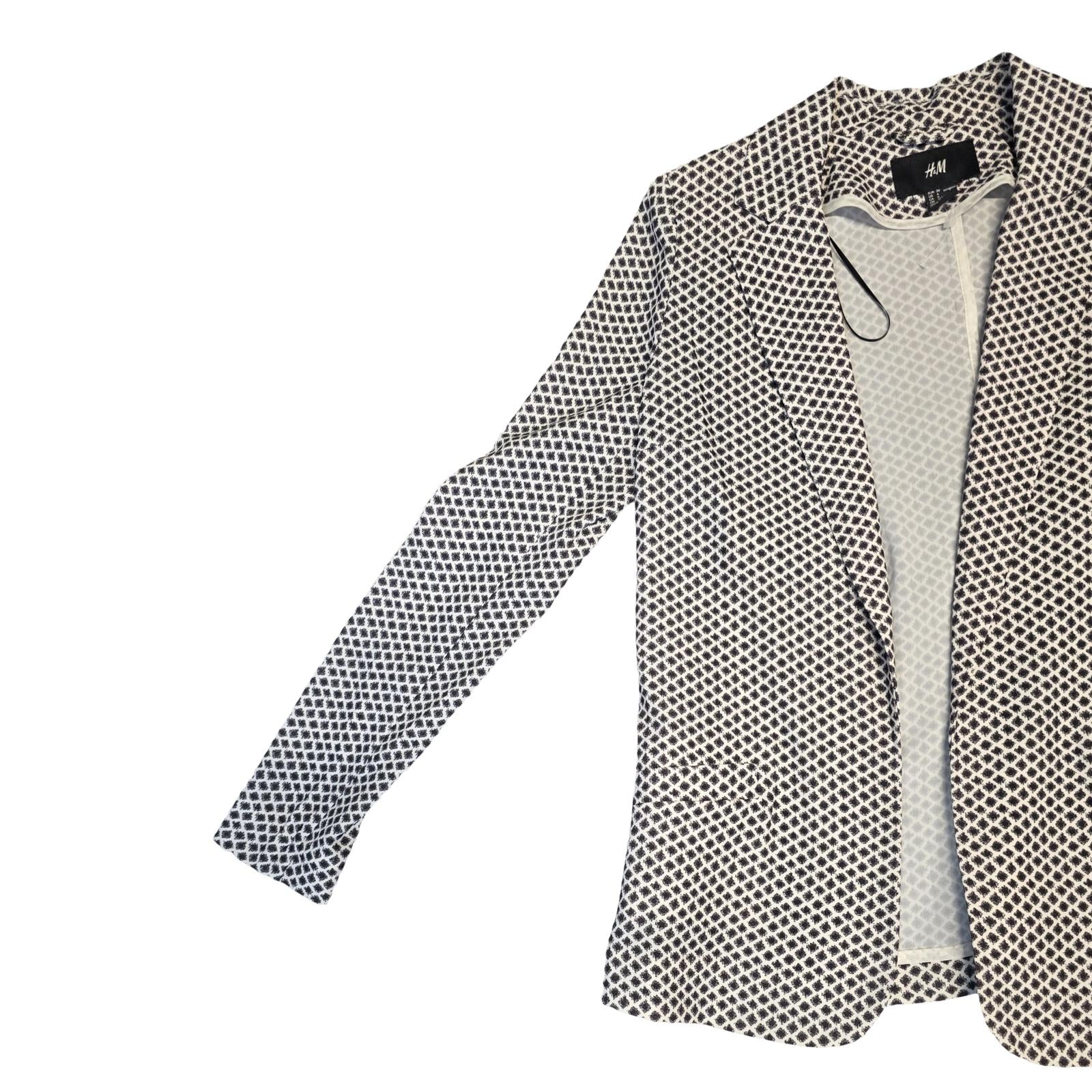 H&M Black & White Geometric Print Blazer Size 8 Tailored Monochrome Style