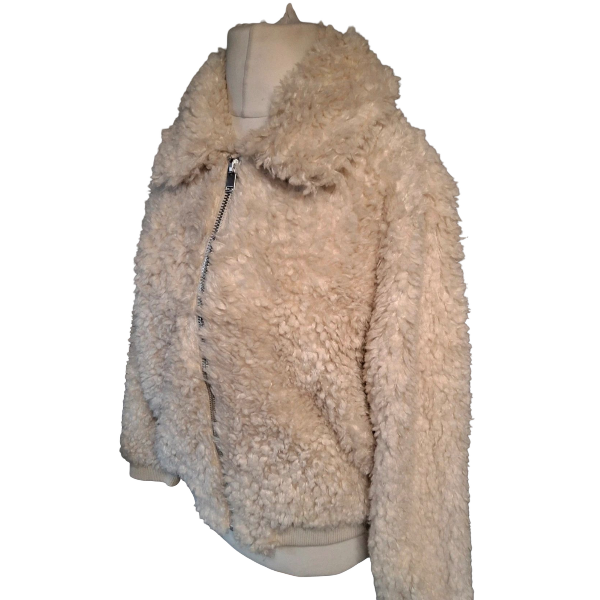 H&M Cream Faux Fur Teddy Coat – Zip Up, Pockets, Lined, Size L (size 16/18) – Cosy Mid Length