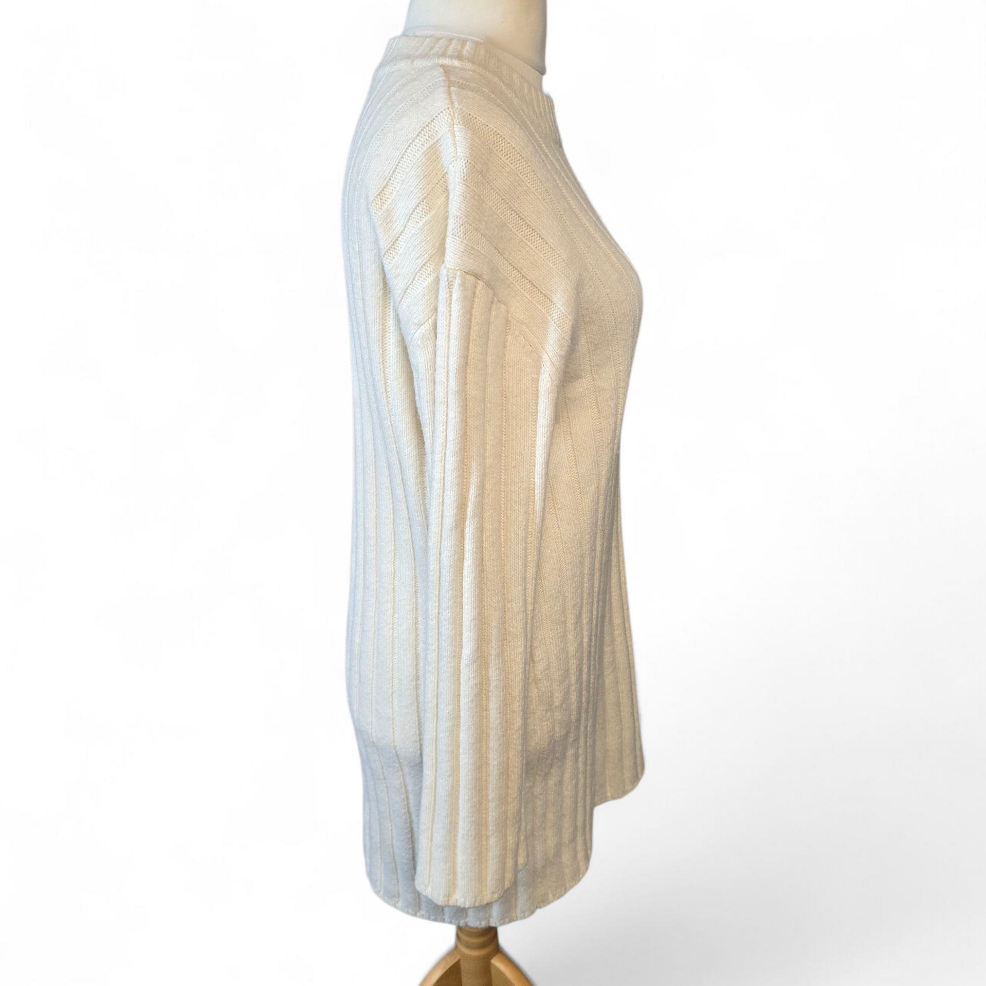 H&M Cream Ribbed Jumper Dress – Size S (UK size 12) – Cosy Knit with High Neck