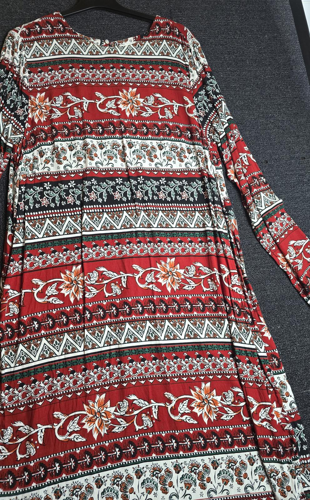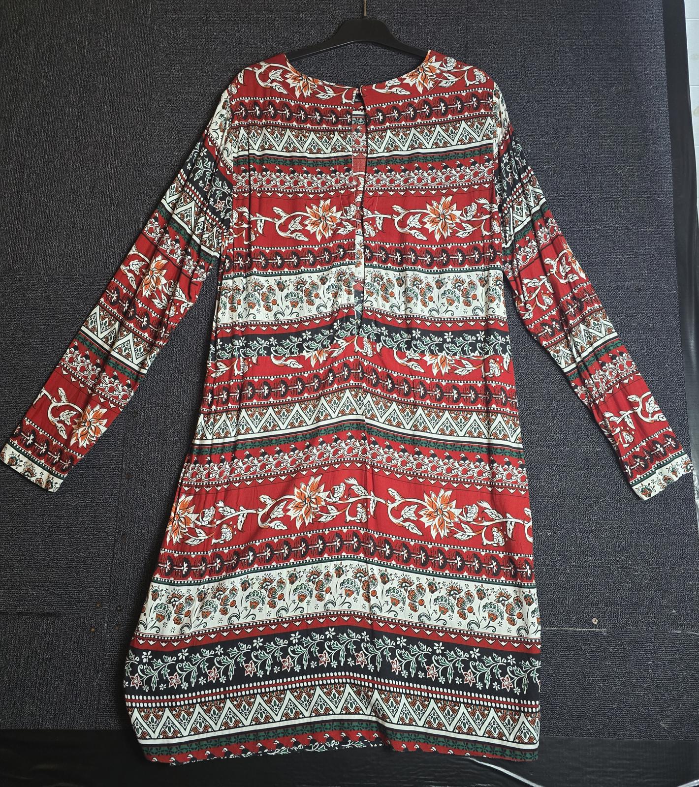 Preloved patterned dress in red and white, ideal for everyday, smart-casual or autumn layering wear.