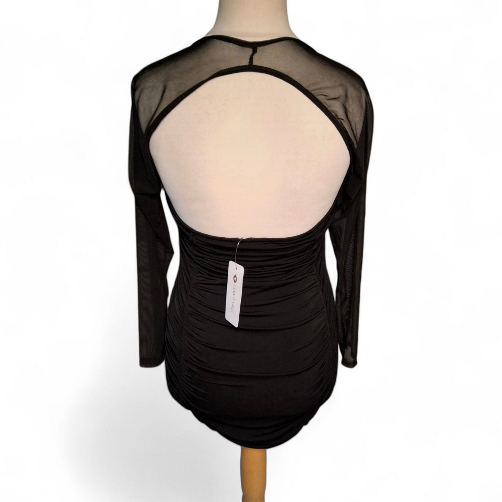 I Saw It First Black Ruched Mini Dress Size 12 – Open Back, Sheer Sleeves, Padded Bust