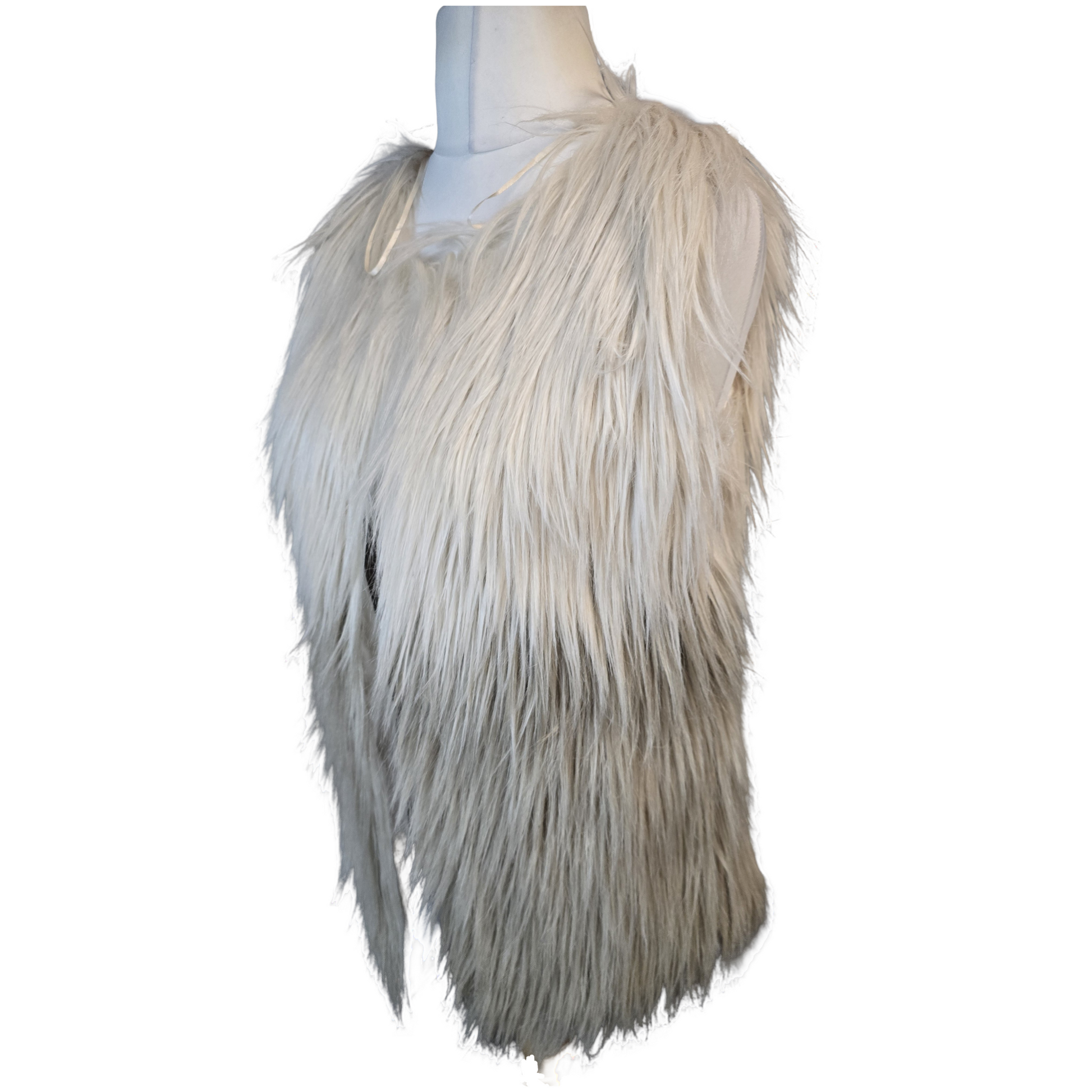 Style: Faux fur gilet, clasp shut