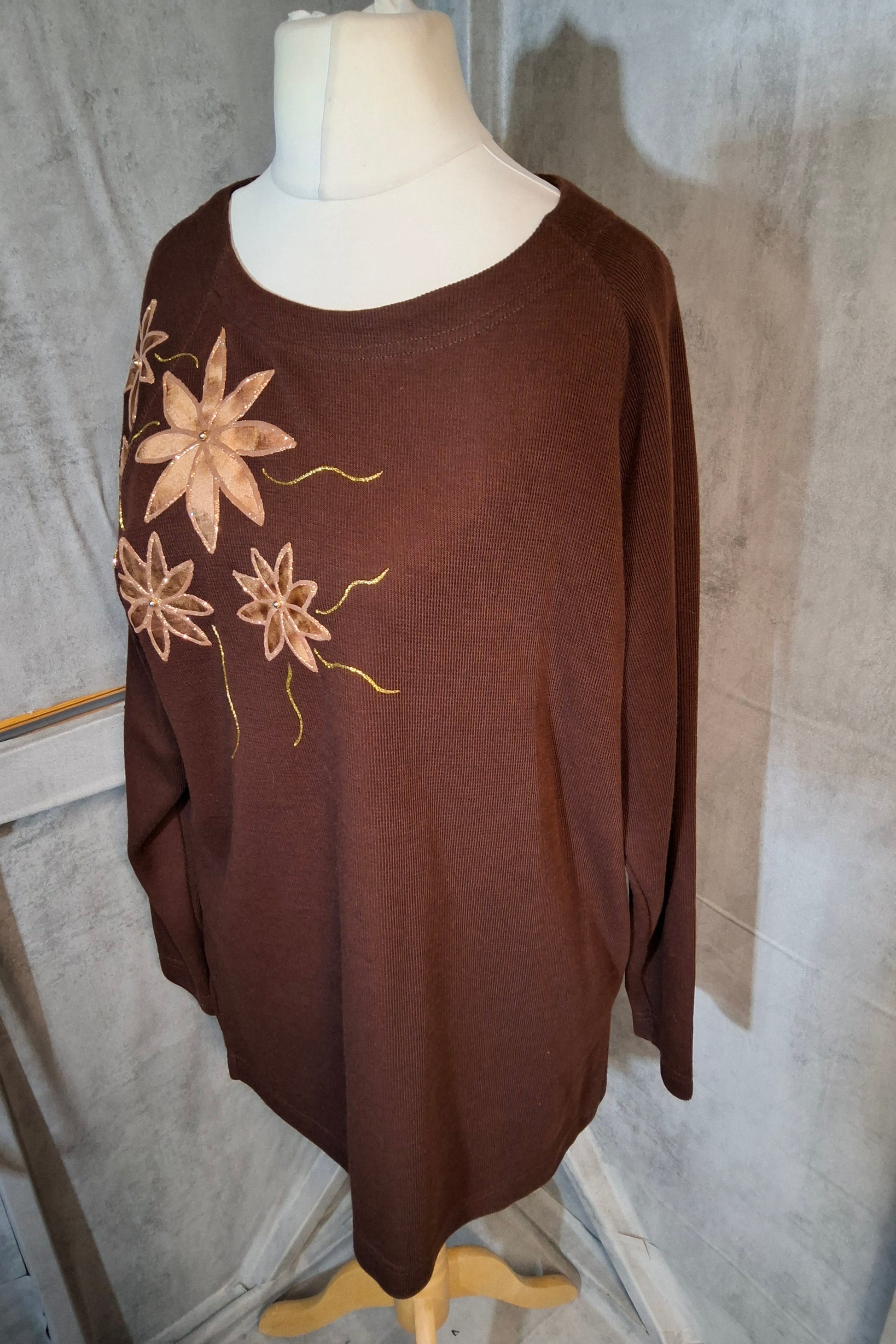 #LesleyAnneStyle #BrownJumper #Size14Fashion #Size16Style #PrelovedKnits #AutumnLayers #CosyChic #FloralJumper #SecondhandStyle #SheLovedPreLoved #InstyleFinds #VintageVibes #WornNotTorn #WarmAndStylish