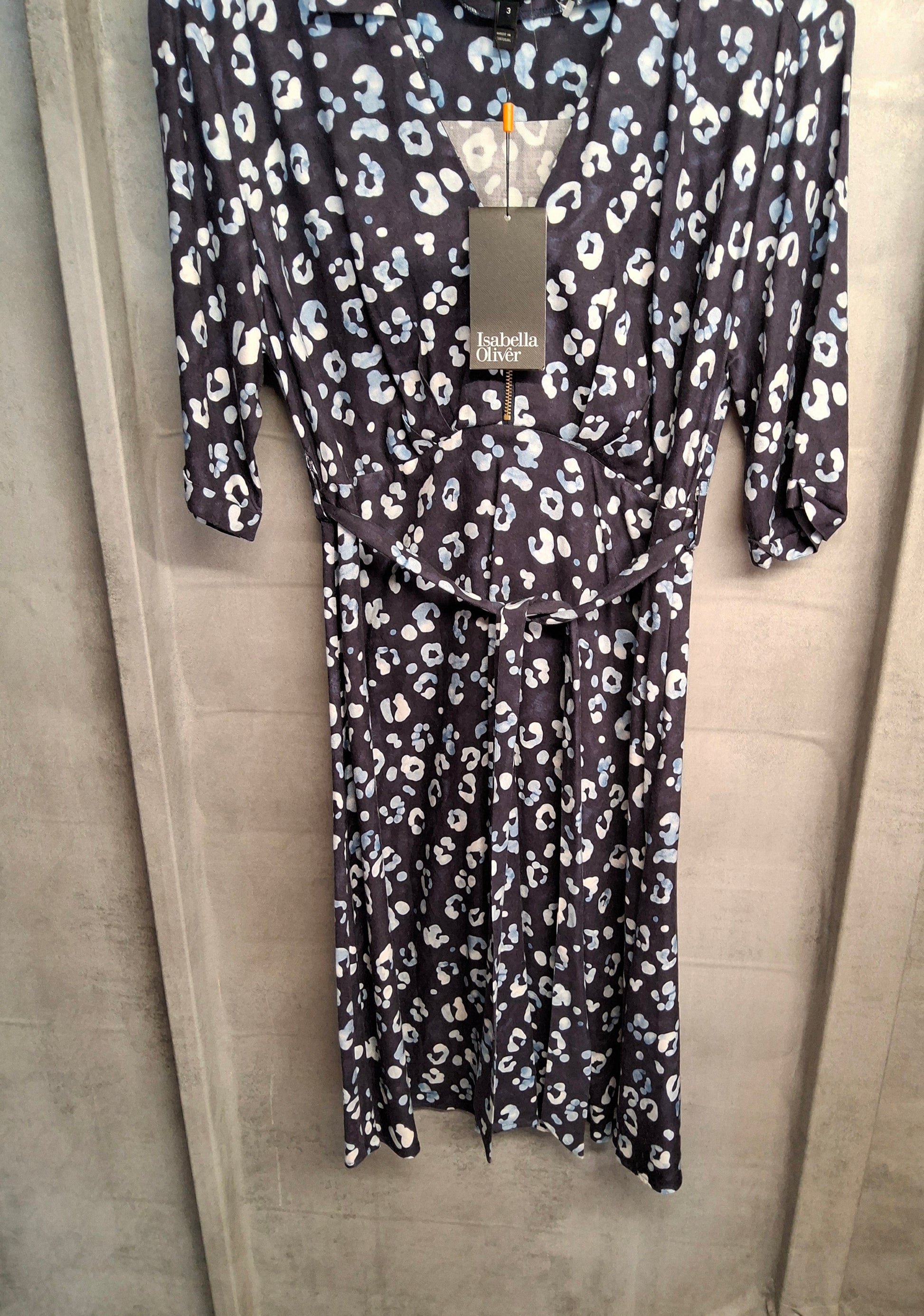Isabella Oliver Navy Animal Print Maternity Nursing Dress – Size 12, Belted, RRP £129
