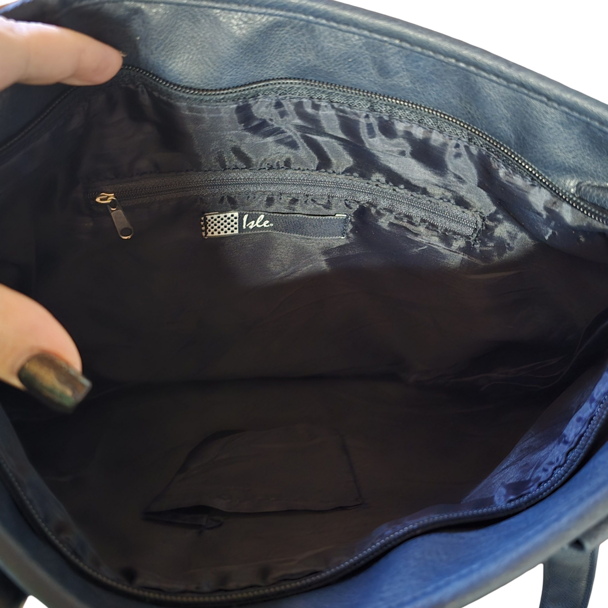 Navy Blue Faux Leather Shoulder Bag | Medium Size | Zip Closure | Everyday Tote | Isle