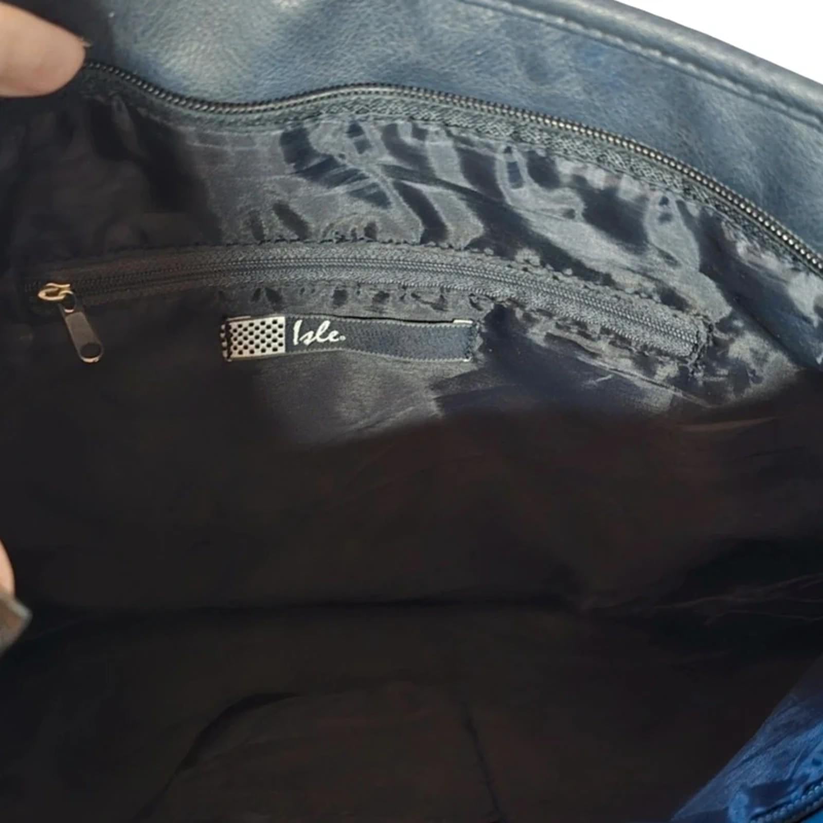 Isle Navy Faux Leather Shoulder Tote Bag With Outer Zip Pocket