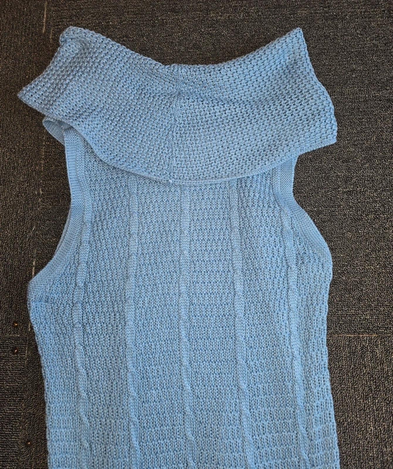 Preloved sleeveless knitted jumper / longline knit in blue, ideal for everyday / casual / comfy / layering wear.
