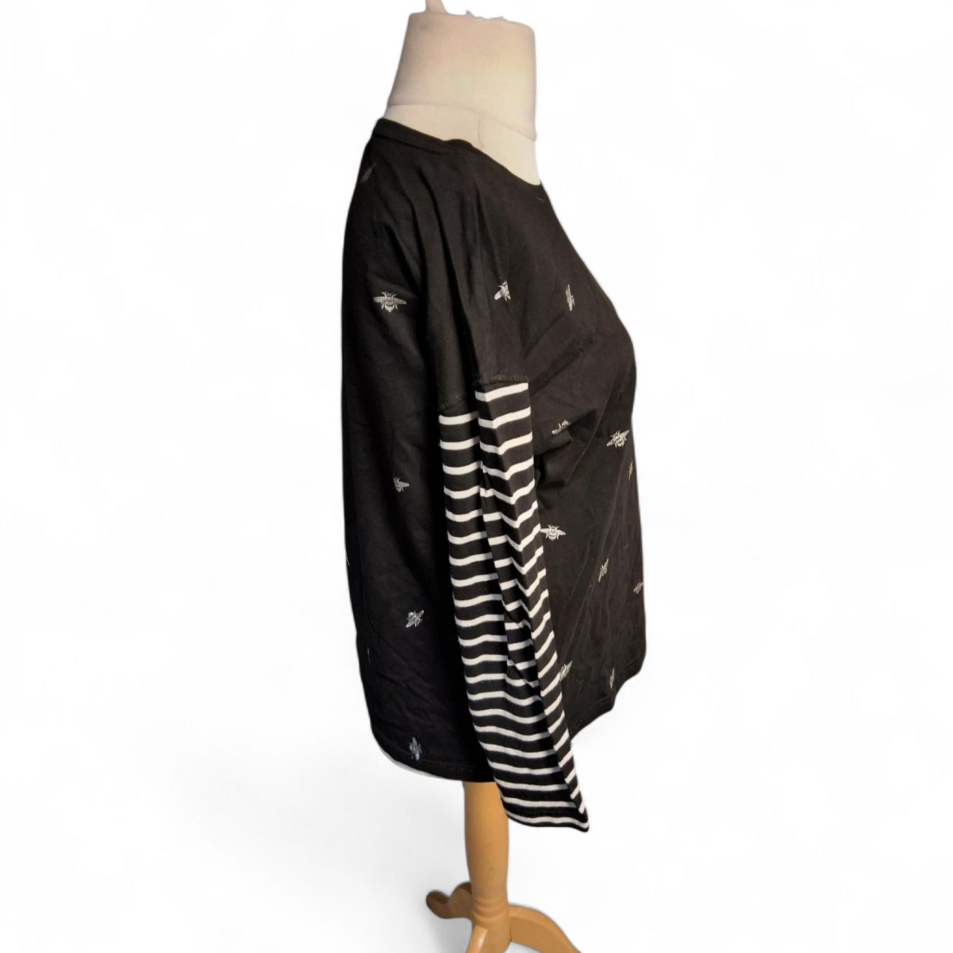 Colour: Black with white bee design & striped sleeves