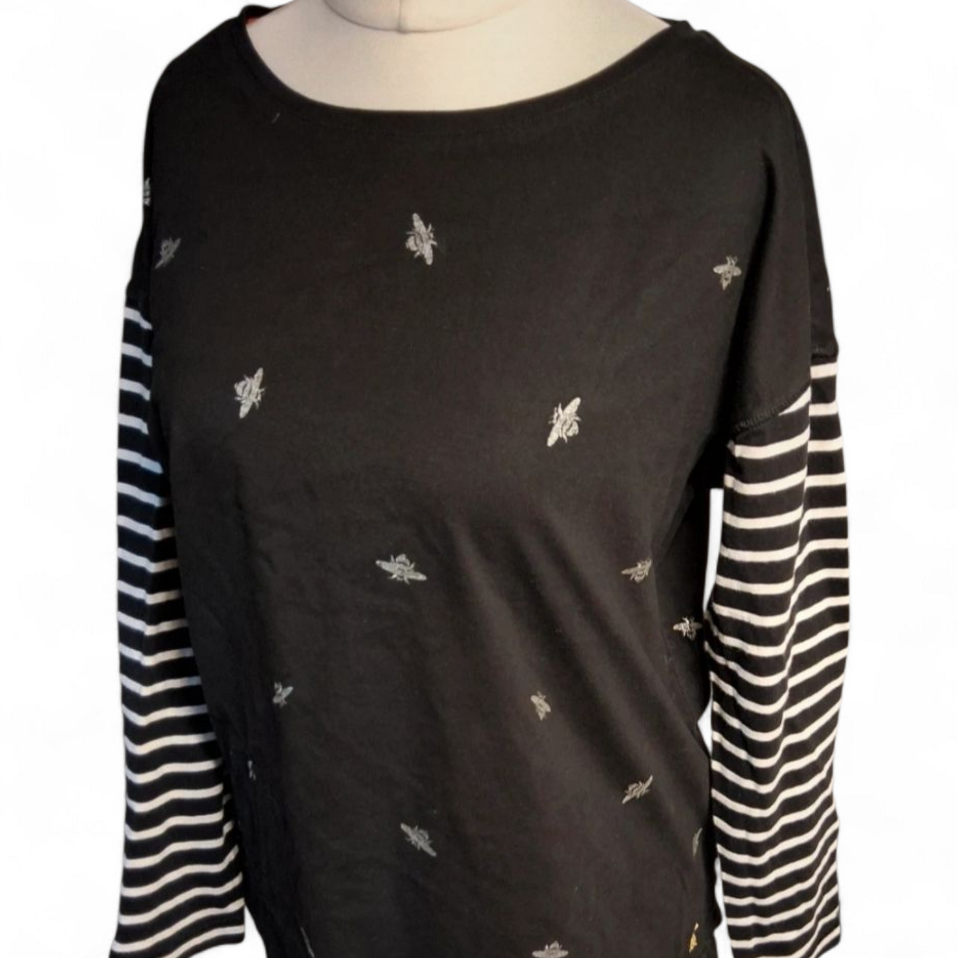Joules Black Long Sleeve Bee Print T-Shirt ā Size 12 ā 100% Cotton