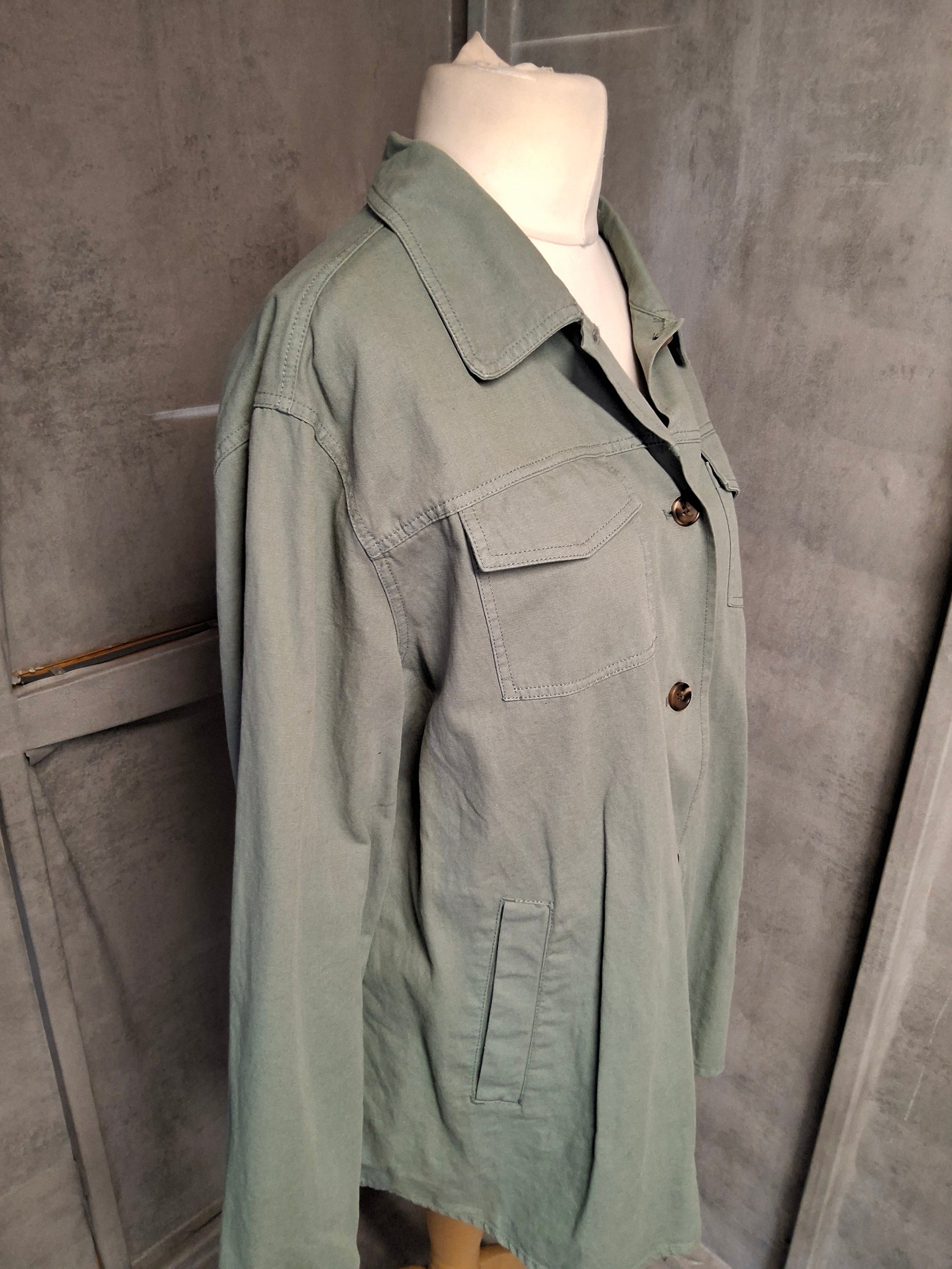Joules Khaki Green Cotton & Linen Blend Shacket – Size 14