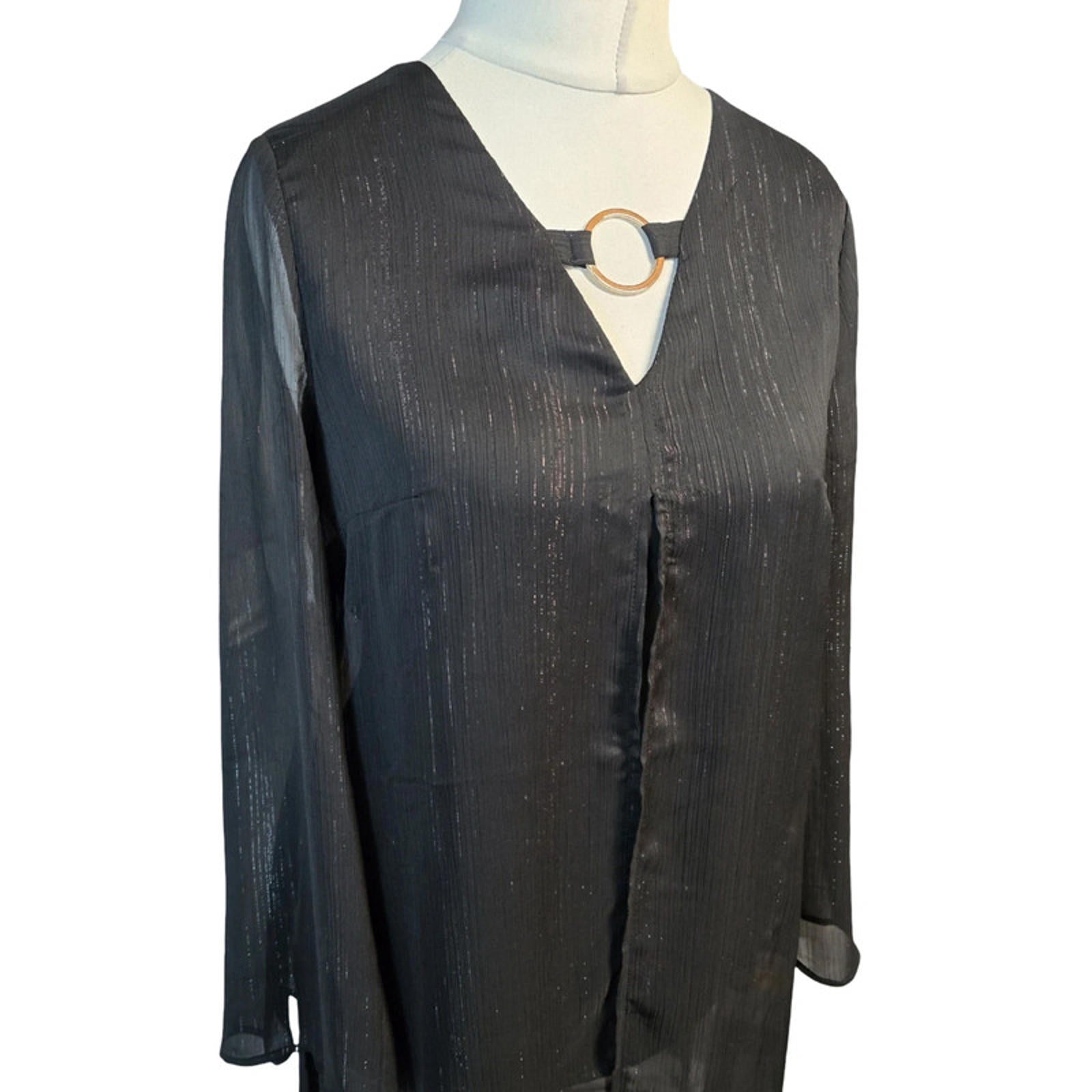 Preloved sheer overlay dress in black, ideal for evening, smart-casual or layered wear.