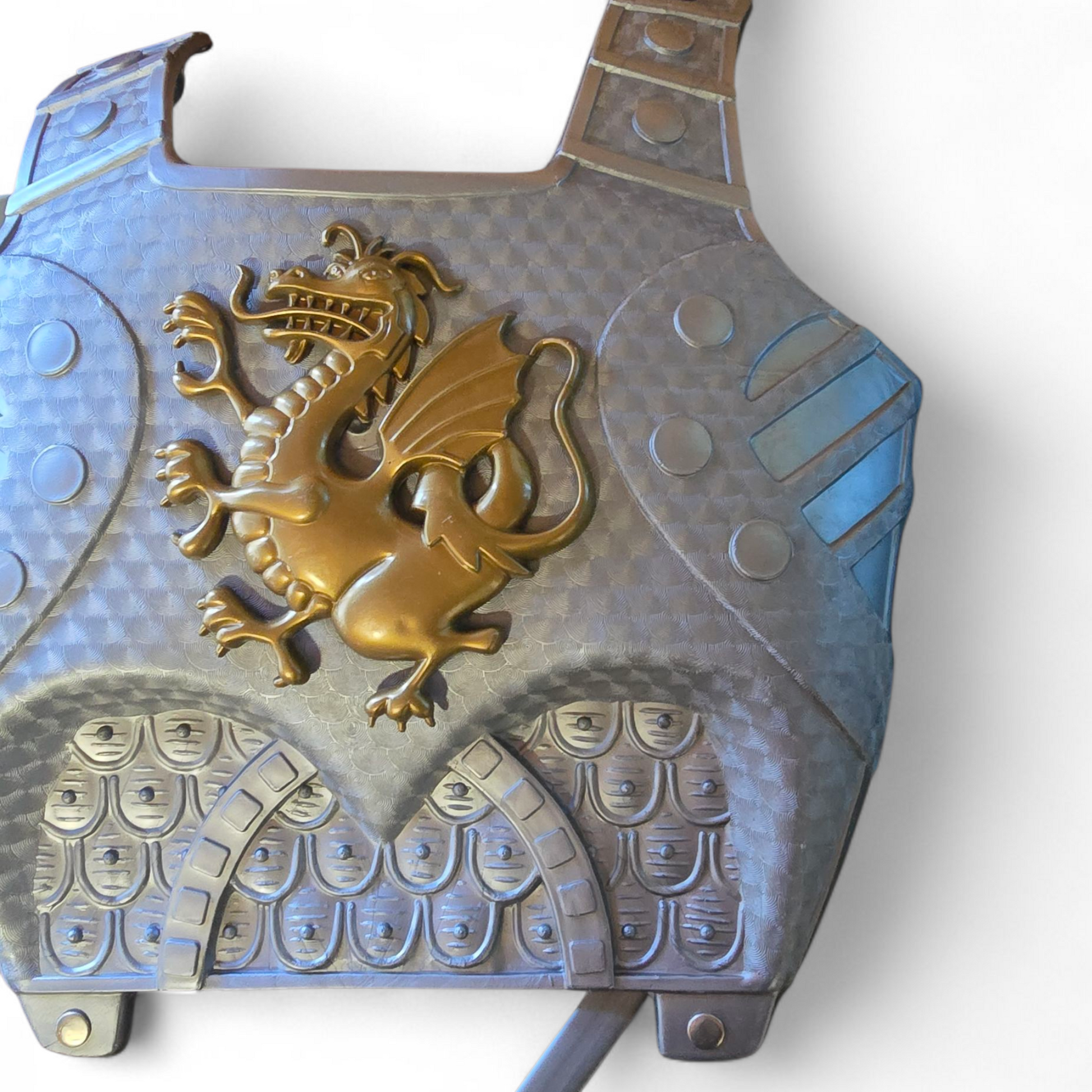 Ready to slay dragons (or just the school play) 🐉⚔️ – this lightweight plastic knight chest plate is perfect for fancy dress, imaginative play, or a medieval-themed party. Features a golden dragon crest on the front and adjustable straps at the back for a secure fit.
